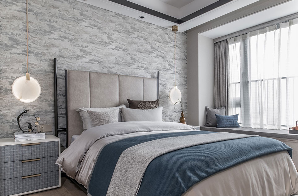 主卧没有做背景墙,墙体统一刷杏白偏灰立邦漆,不过分张扬,又能凸显主人的低调优雅的气质格调。