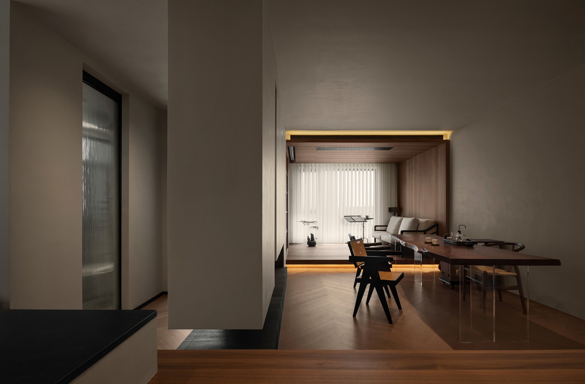 在喧嚣都市的褶皱里,这套空间以**「减法美学」**重构生活的本质,将材质的本真、光影的韵律与功能的温度,织入每一寸呼吸感中。