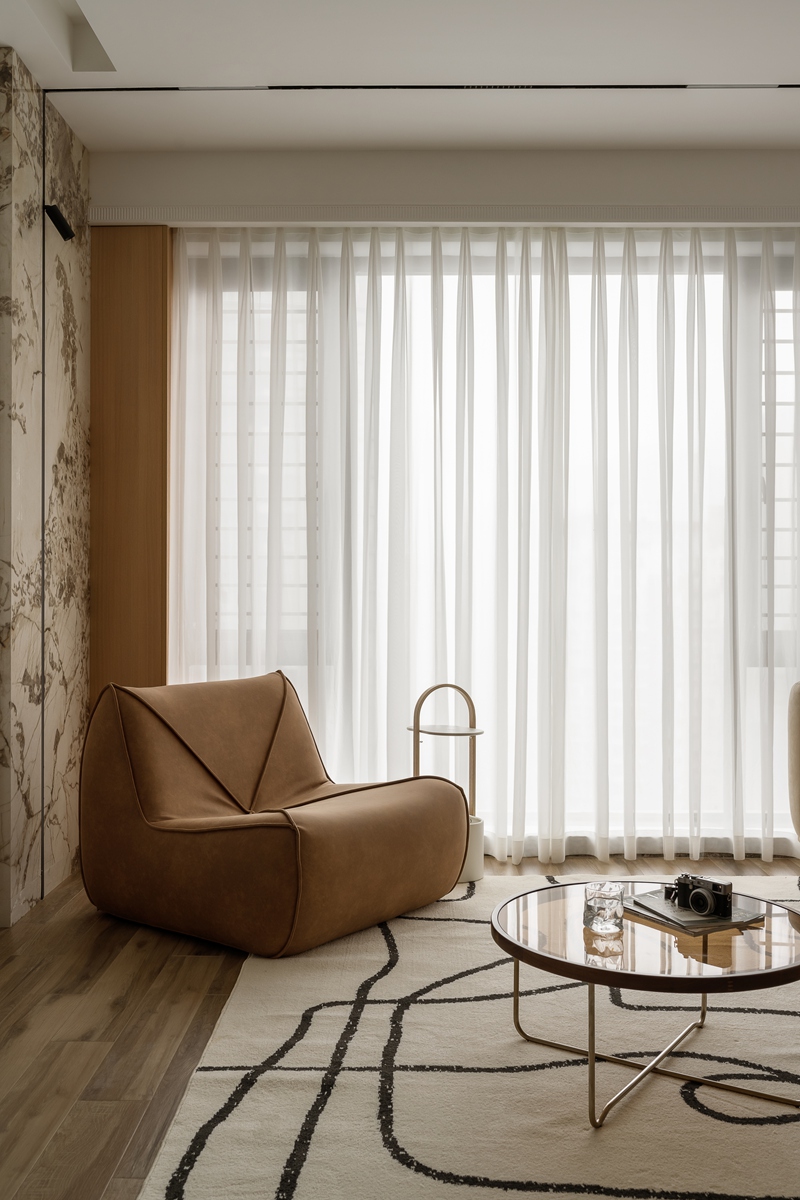 这套住宅以自然肌理与极简线条为笔,在侘寂美学的松弛感中,注入当代生活的精致质感,每一处设计都在平衡“空”与“满”、“素”与“雅”的张力。