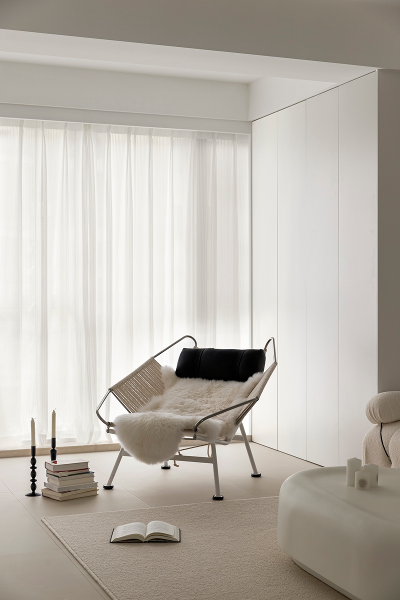 这套居所以**“纯粹白+克制设计”**为语言,将“少即是多”的哲学注入每一寸空间,让家成为可呼吸、可沉淀的精神场域。
