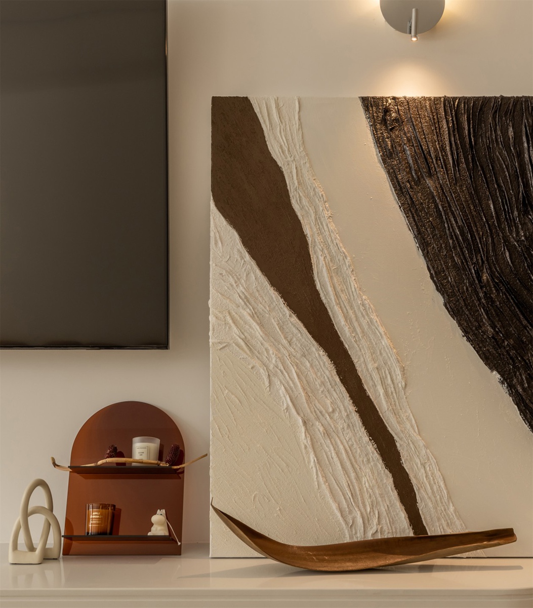 核心主张:以暖棕肌理为笔,复古诗意为墨,在空间的每一处褶皱与纹路里,书写“慢下来,与生活深情相拥”的日常哲学——让家成为能盛下疲惫、也容得下浪漫的“温暖容器”。