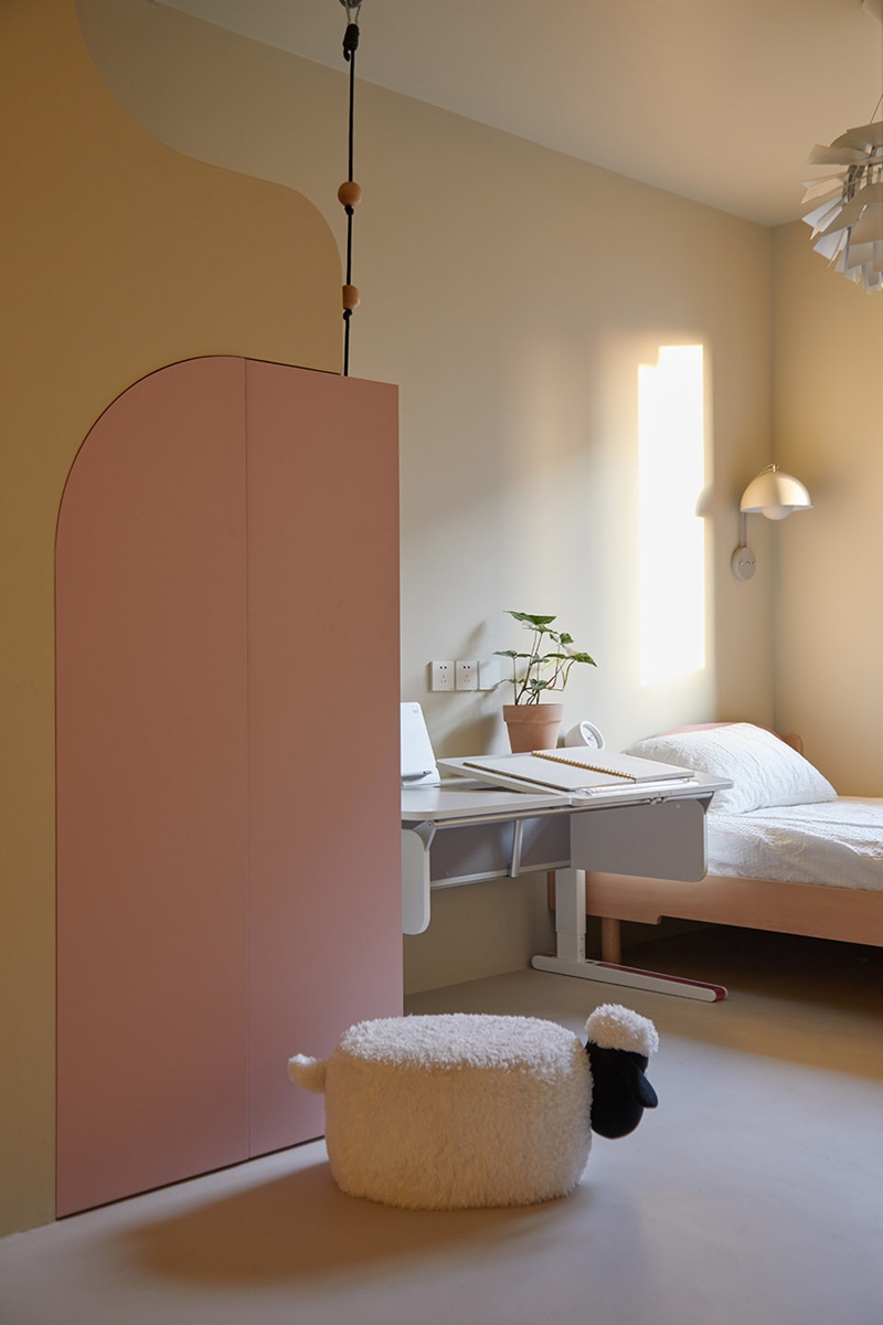 以柔和弧线为笔、温暖色系为墨,在空间里织就一张“松弛感的网”,让每一次归家都像投入温柔的怀抱。