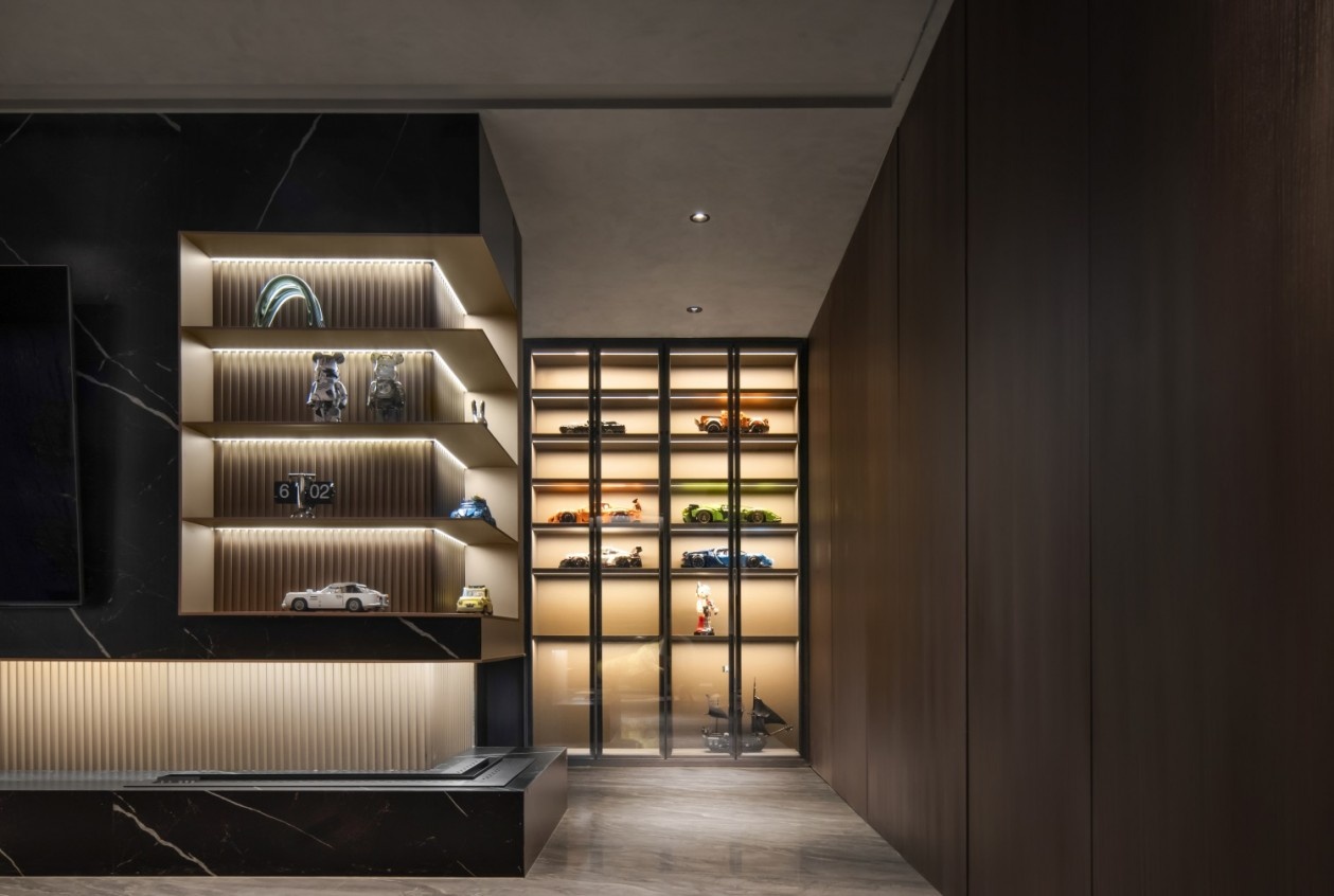 这套设计以暗黑为底色,却绝非压抑的代名词,而是通过材质对比、色彩点睛与艺术陈设,将“先锋”“奢华”“个性”揉成一剂猛药,治愈所有对平庸设计的审美疲劳,让家成为既适合独处沉思,又能承载潮酷社交的“当代艺术容器”。