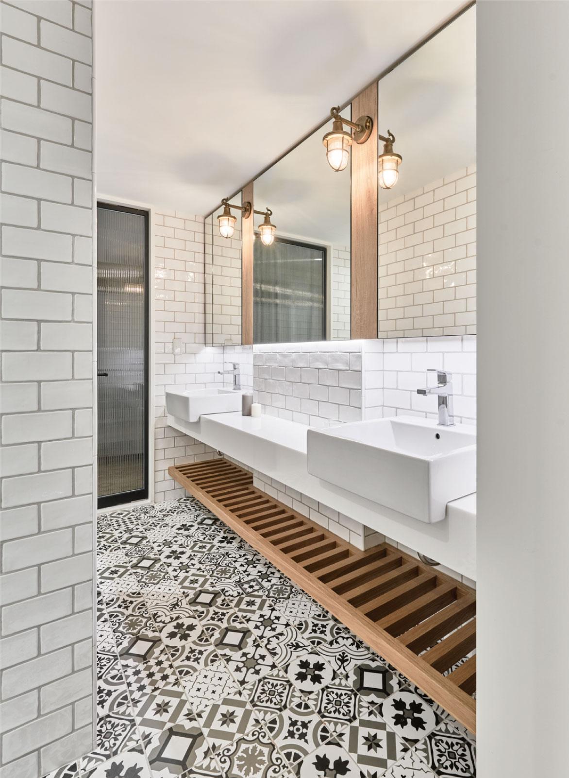 4. 卫浴:复古花砖+实用细节