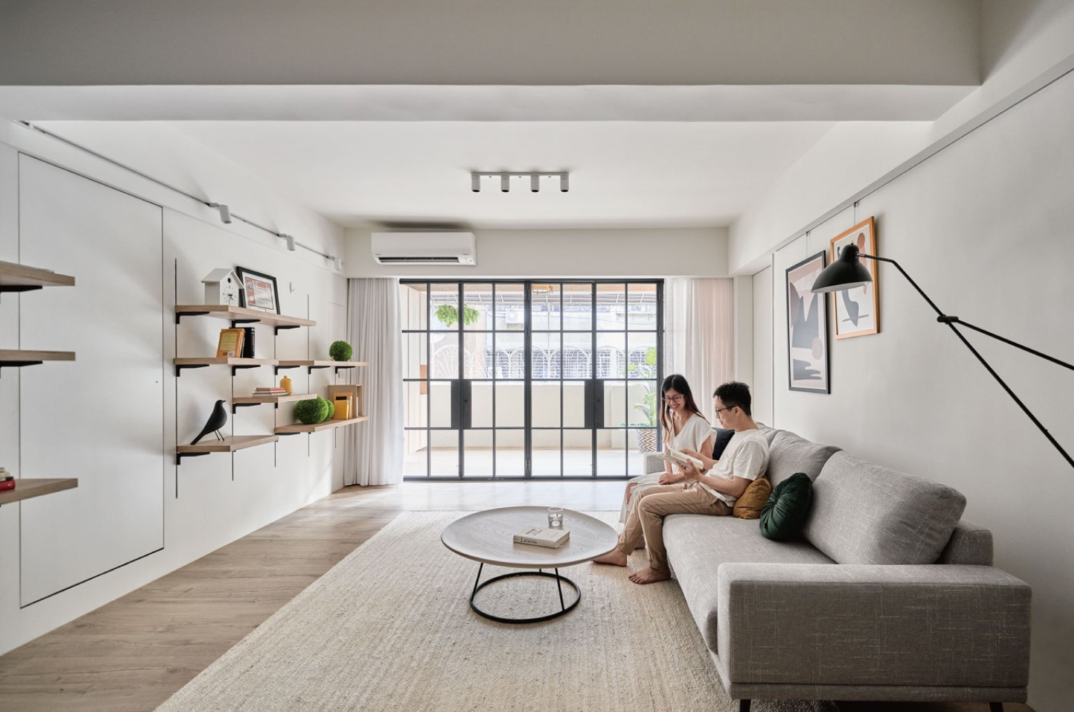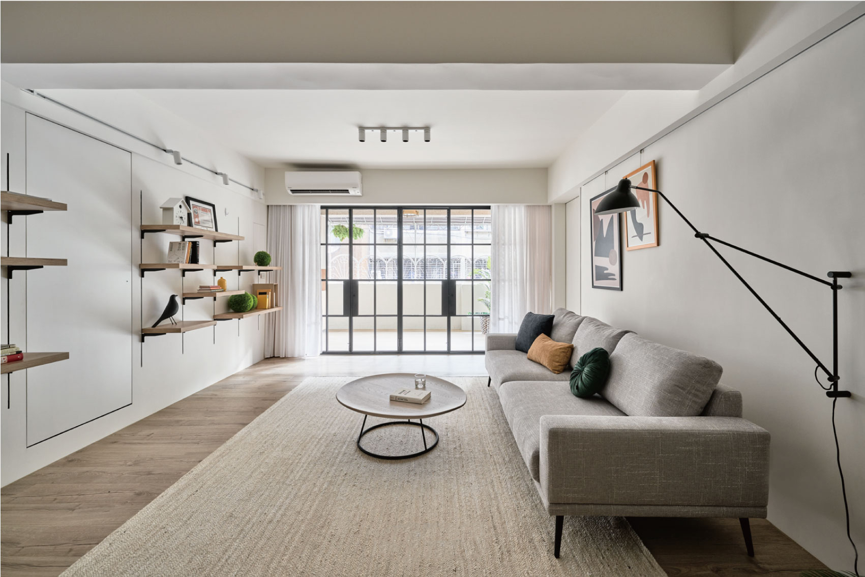 1. 客厅:“隐形收纳”+“松弛感软装”