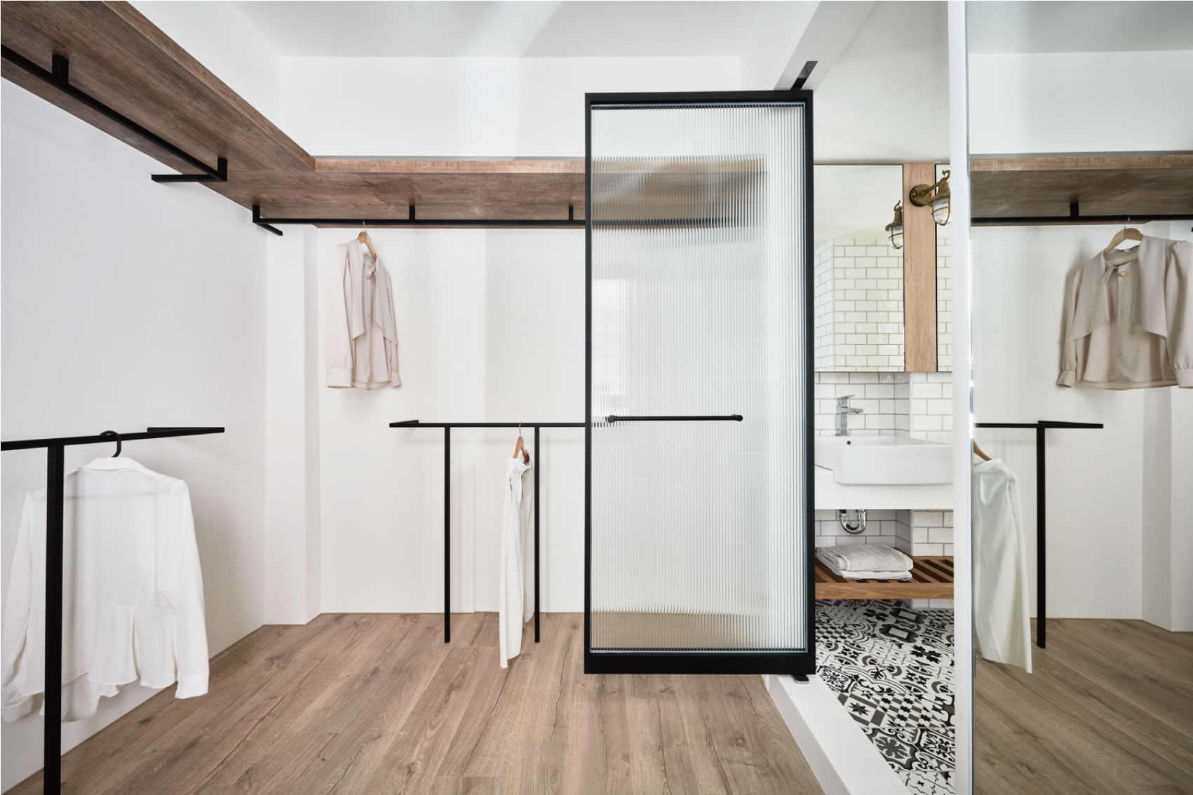 这套设计的妙处是“复古不厚重,简约不单调”——用少量复古元素(黄铜、花砖)做点缀,大部分空间保持极简通透,住进去既不会觉得“太老气”,也不会觉得“太冰冷”。
