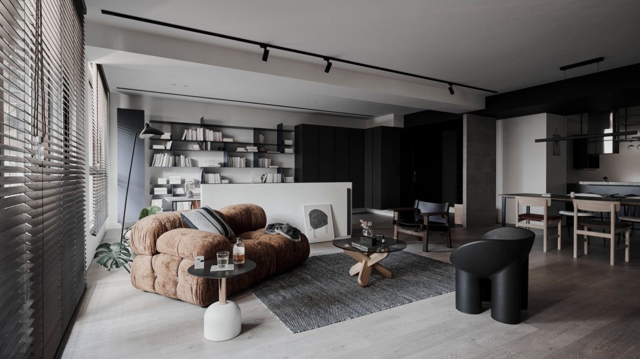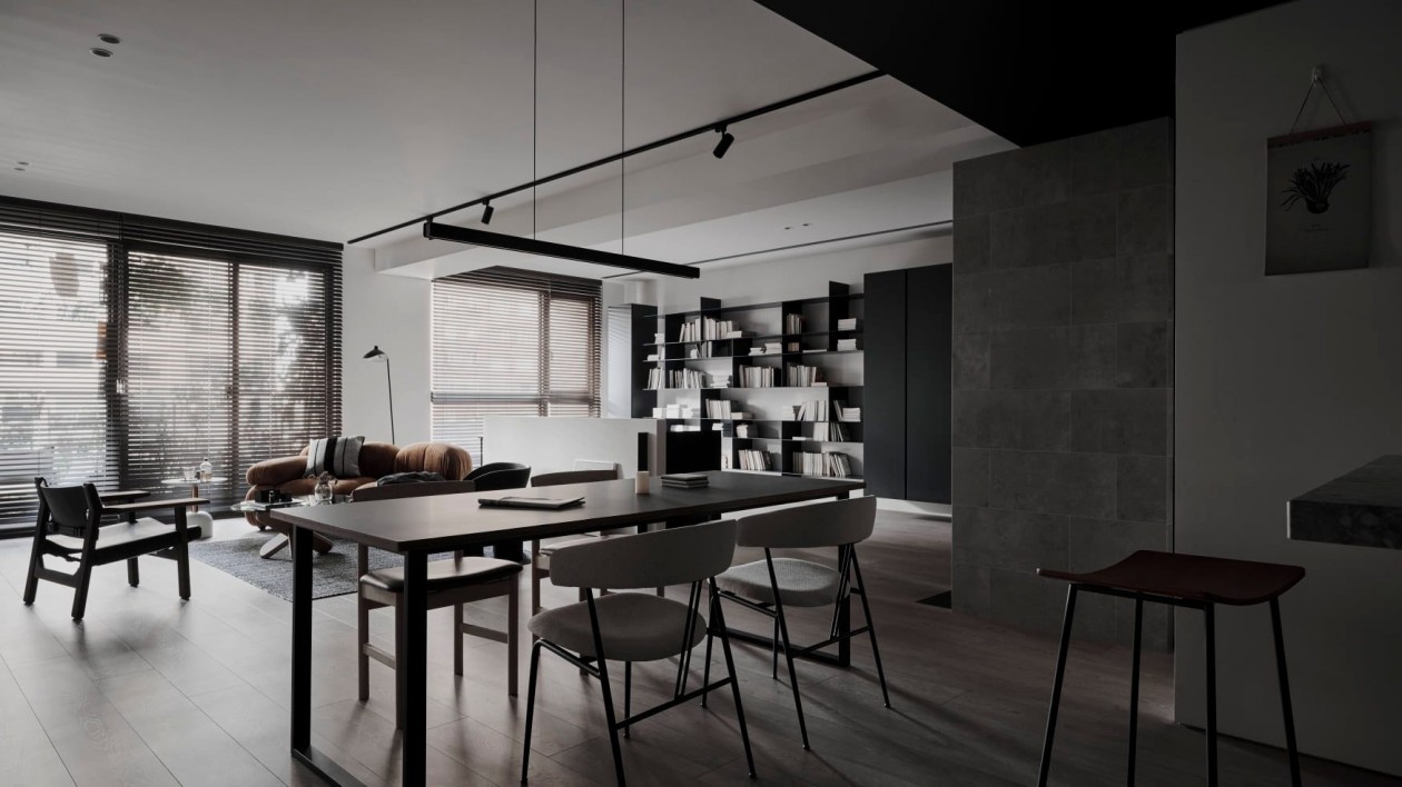 这套暗黑系极简住宅,以“克制的质感”为核心,在黑白灰的基底里,藏着对空间与生活的精准表达:
