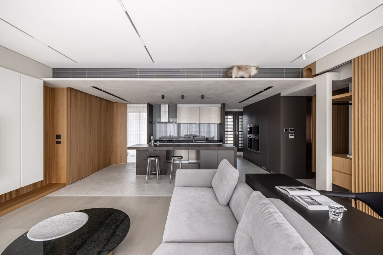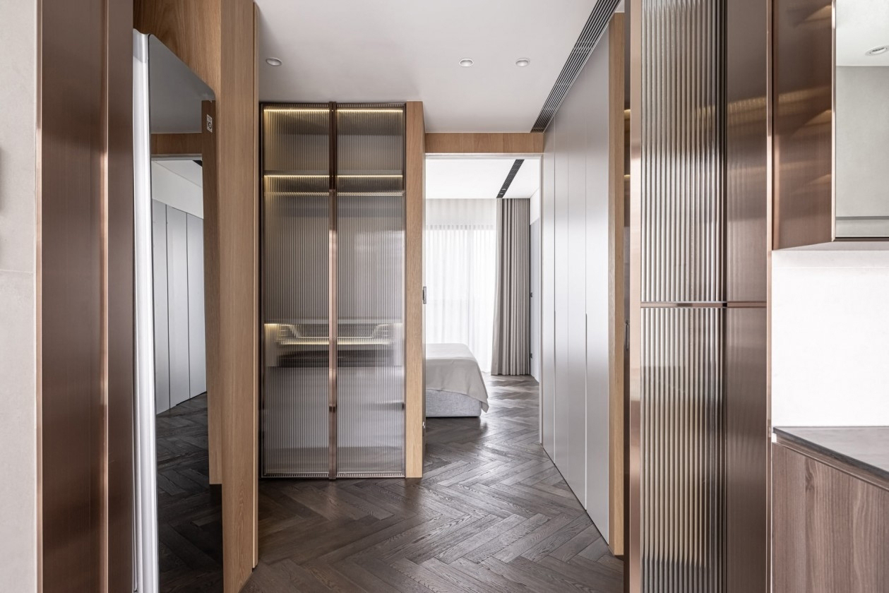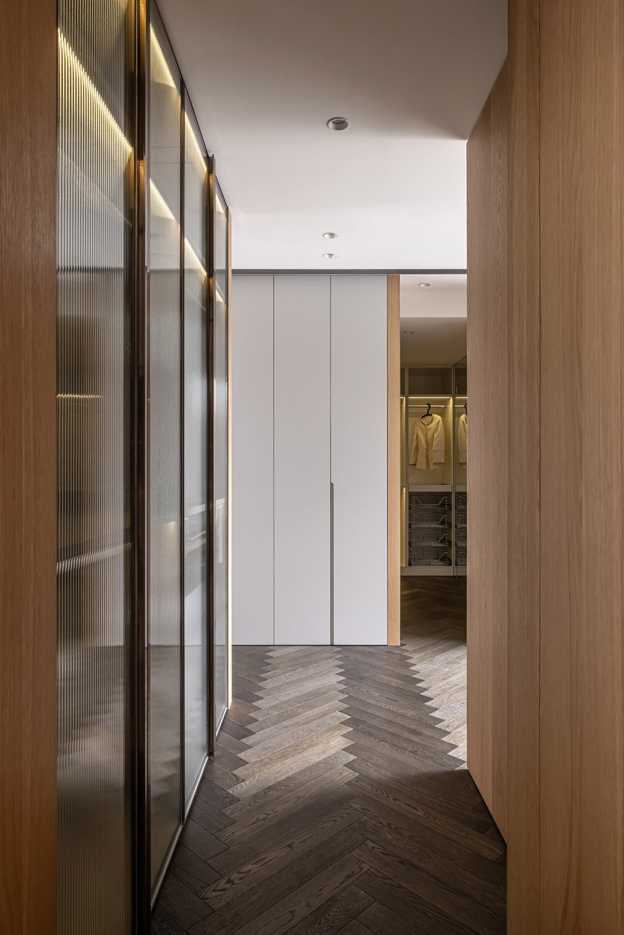 这套设计是暖调极简风,以木色、浅灰为基底,用柔和材质与利落线条,平衡了质感与温度。