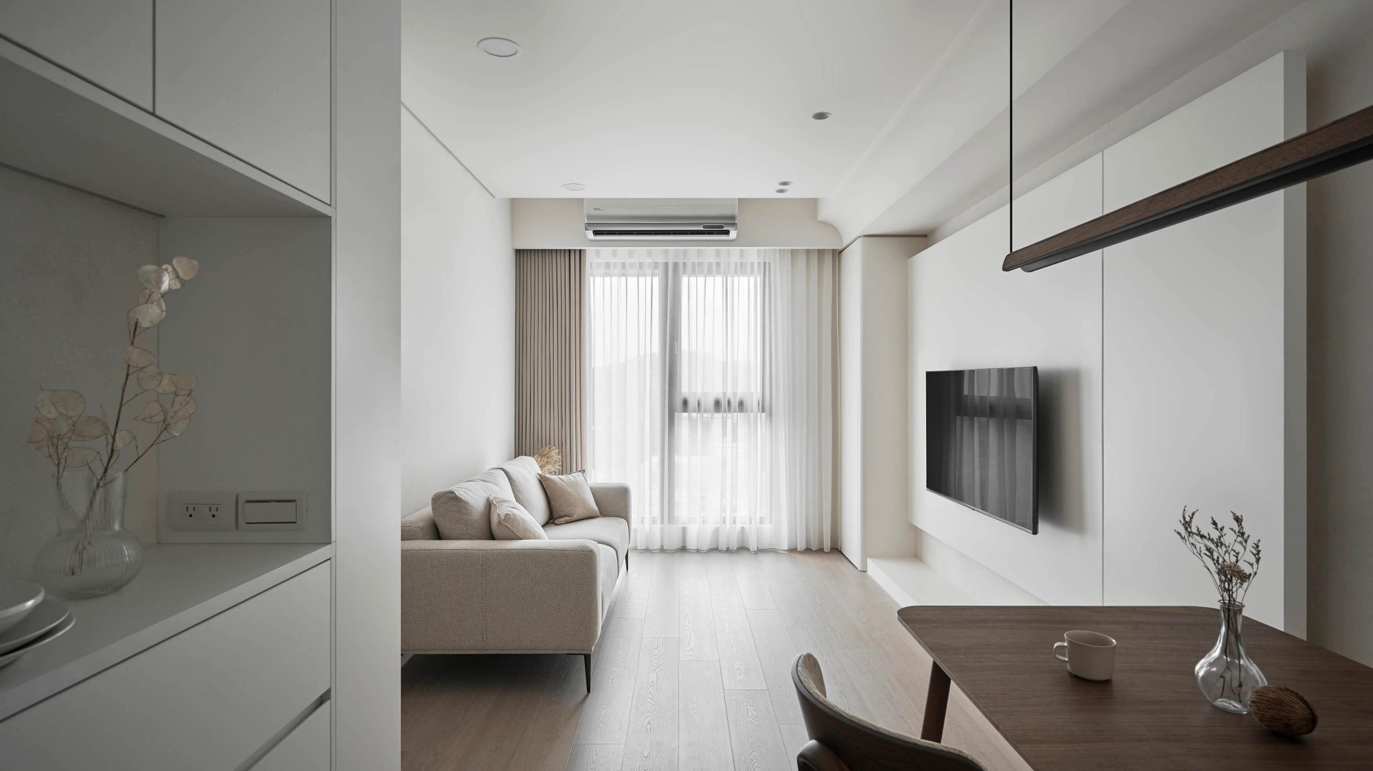 • 客厅:浅麻沙发搭同色系抱枕,带点肌理的陶瓷瓶插着蒲苇,连窗帘都用了“纱+布”的渐变,风一吹就把阳光筛成了软光。