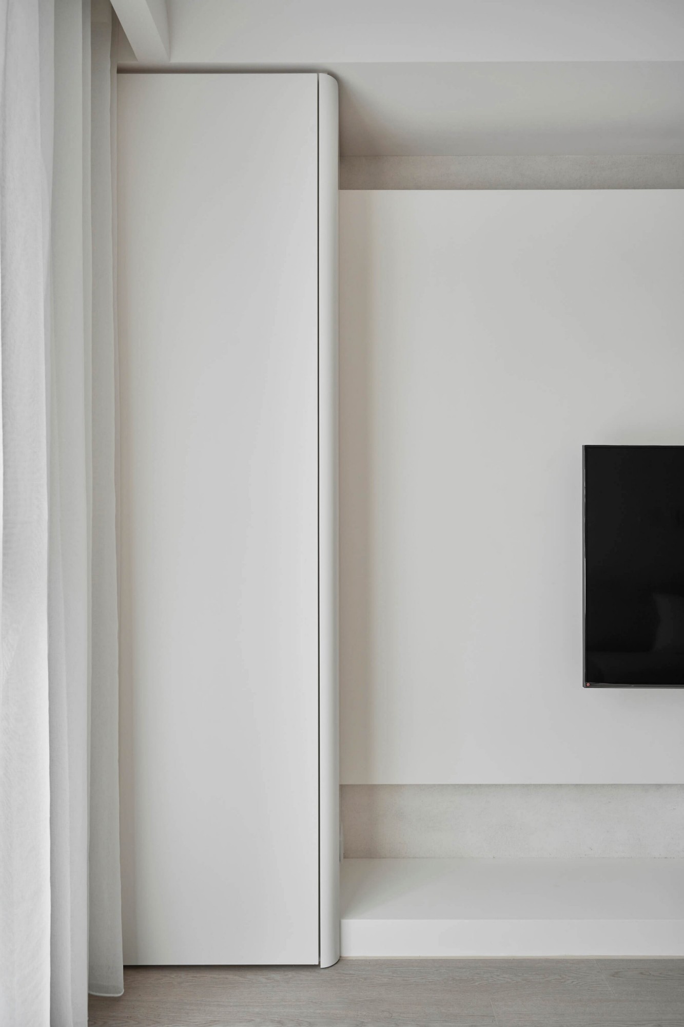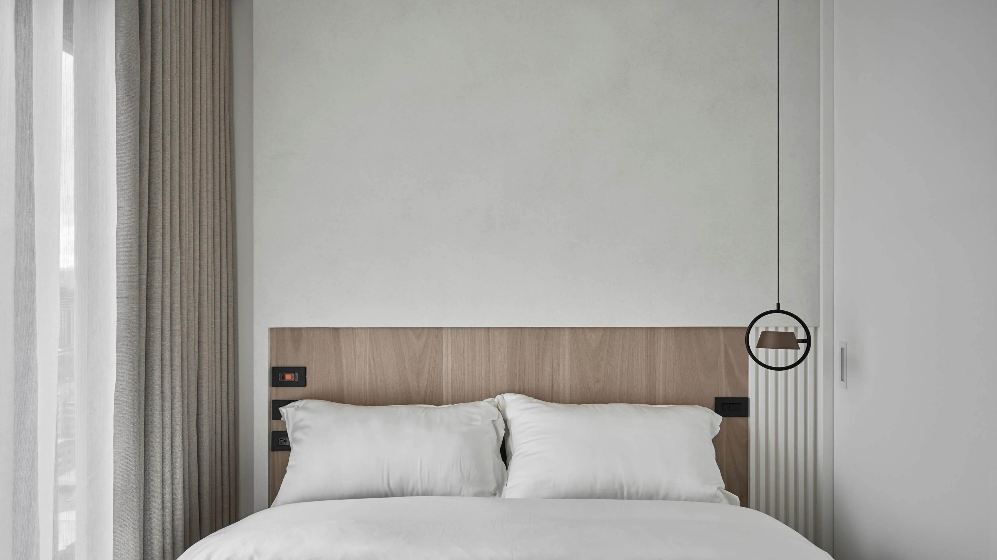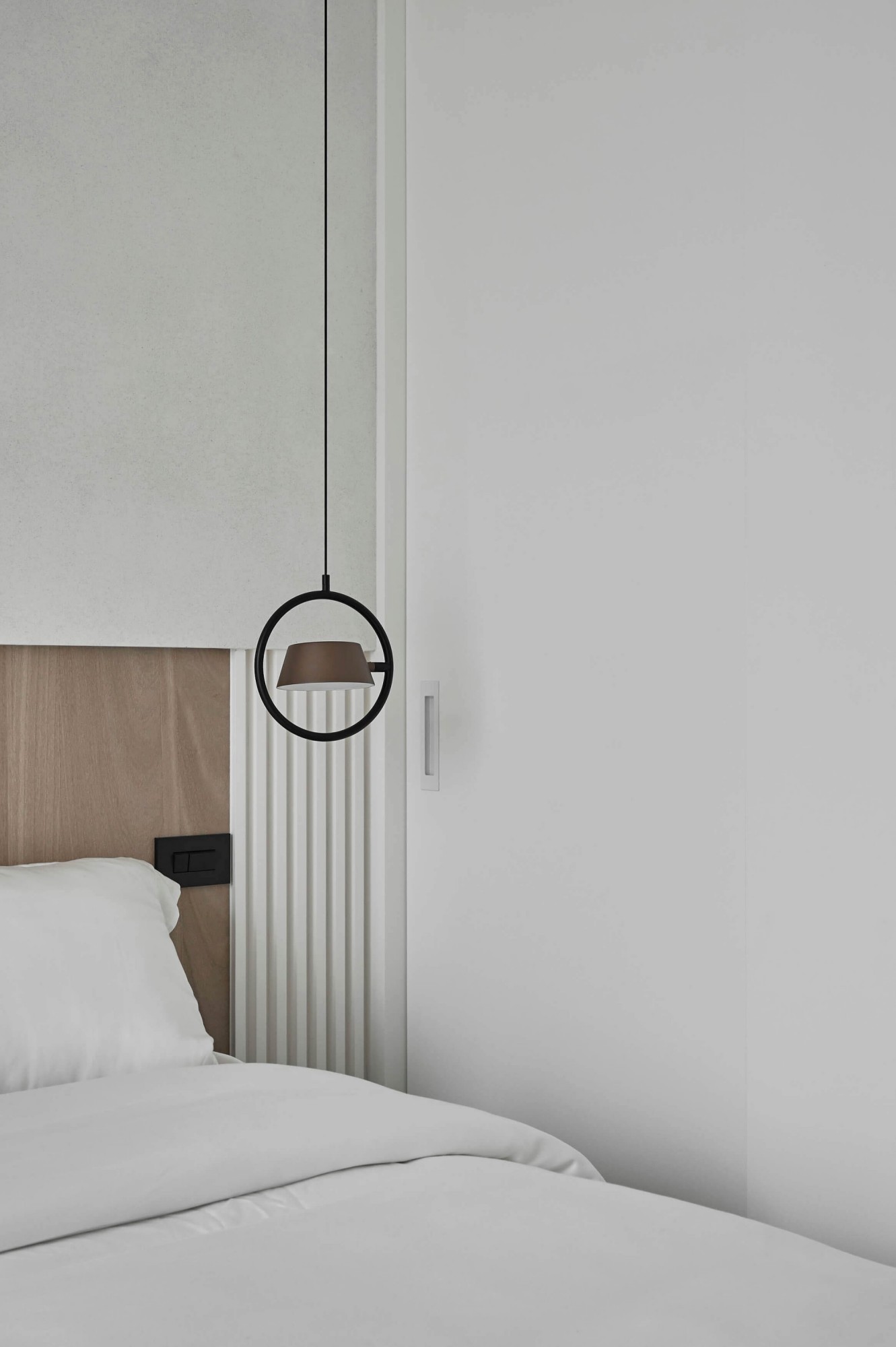 • 卧室:三层窗帘滤出朦胧的窗景,悬浮柜+木饰面床头让空间“轻”下来,全白床品裹着蓬松的软,躺下就是被温柔裹住的安全感。