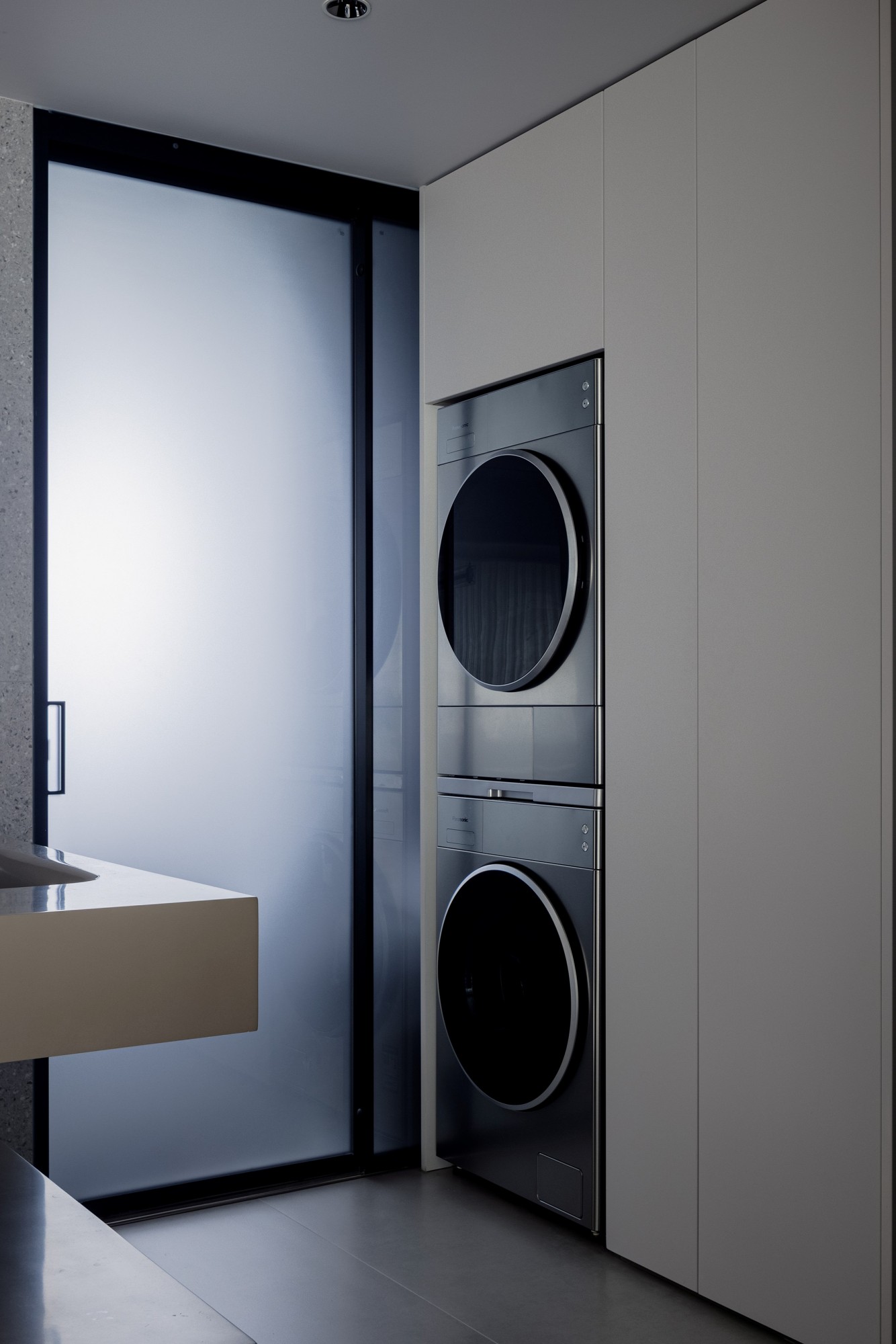 • 厨房:浅灰橱柜+黑色烟机,极简线条里藏着实用,小窗透进的光,让下厨也成了放松的事。