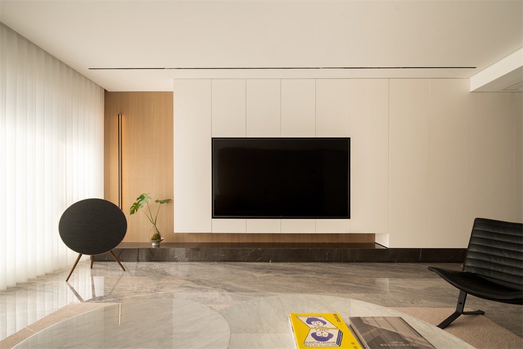 这个空间是暖调极简与精致质感的共生体,以浅木色为基底,用黑白棕的层次、通透的光线和隐藏式设计,织就松弛又高级的日常。