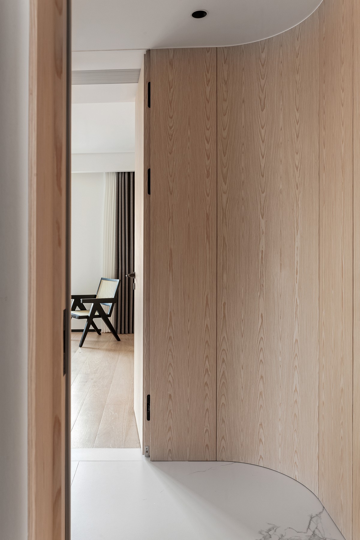 通顶衣柜+隐形门,把空间“收”得利落又开阔;