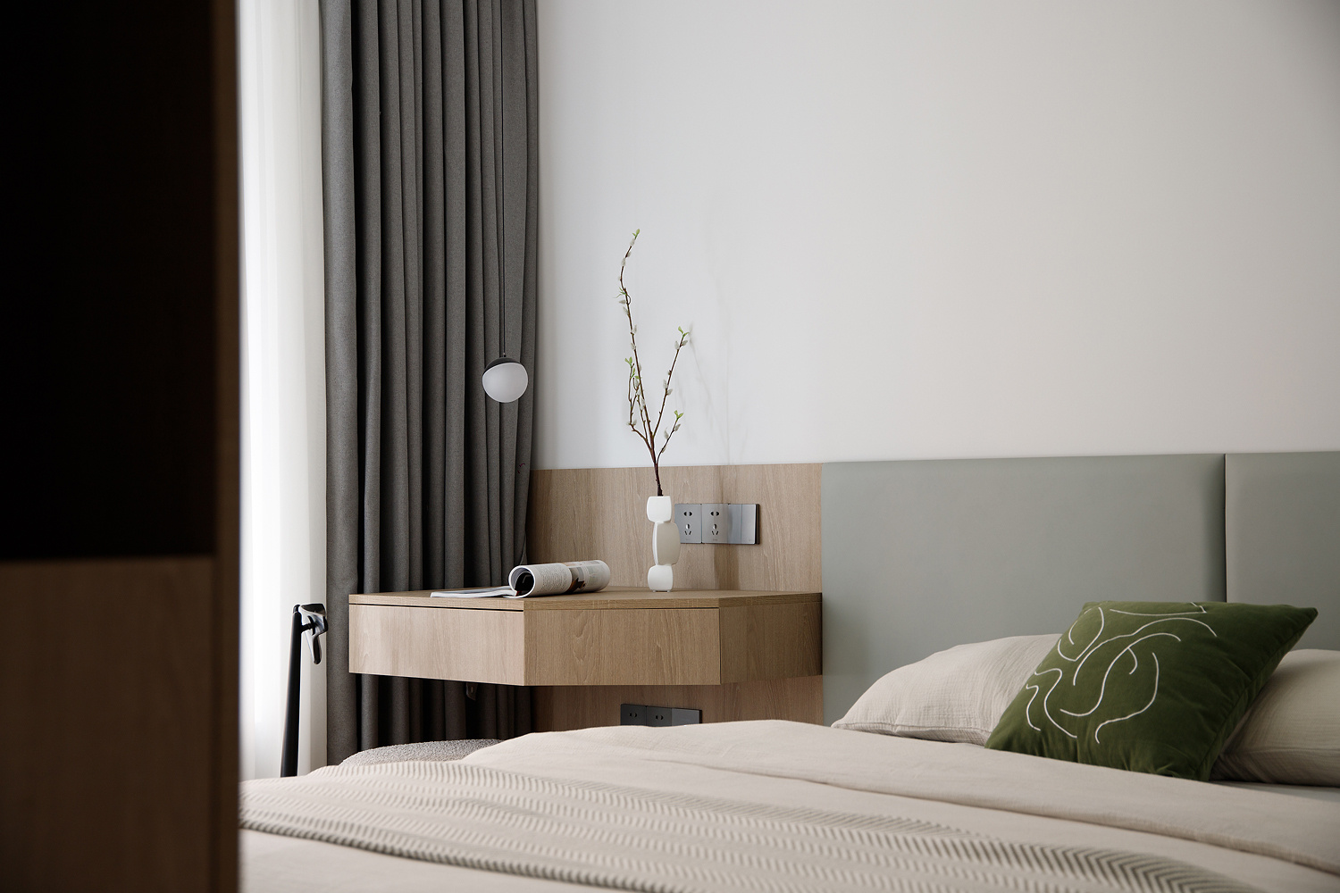 墙面的肌理漆像揉皱的奶霜,窗帘一拉,整个房间都成了“私人松弛场”。