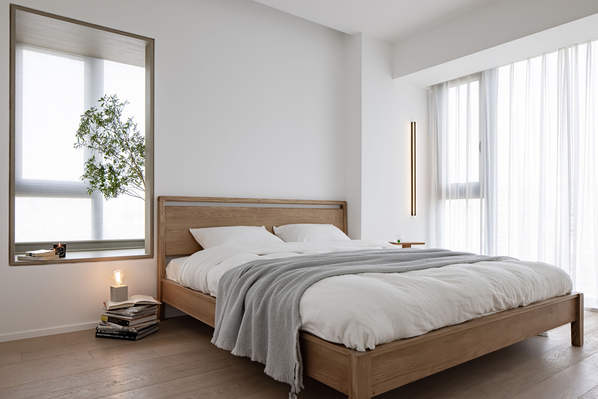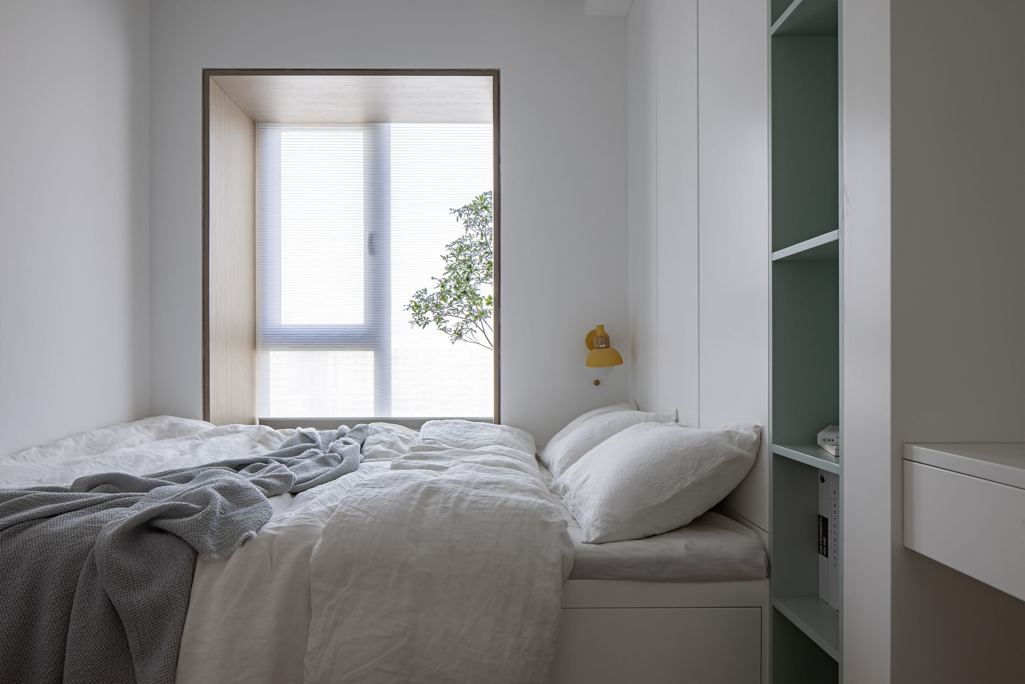 窗边的小台面上,书和花正等着“睡前翻两页”的温柔时刻——家的意义,不过是把日子过成“醒来就开心”的样子。