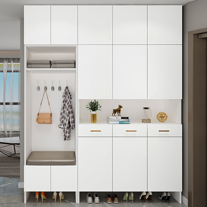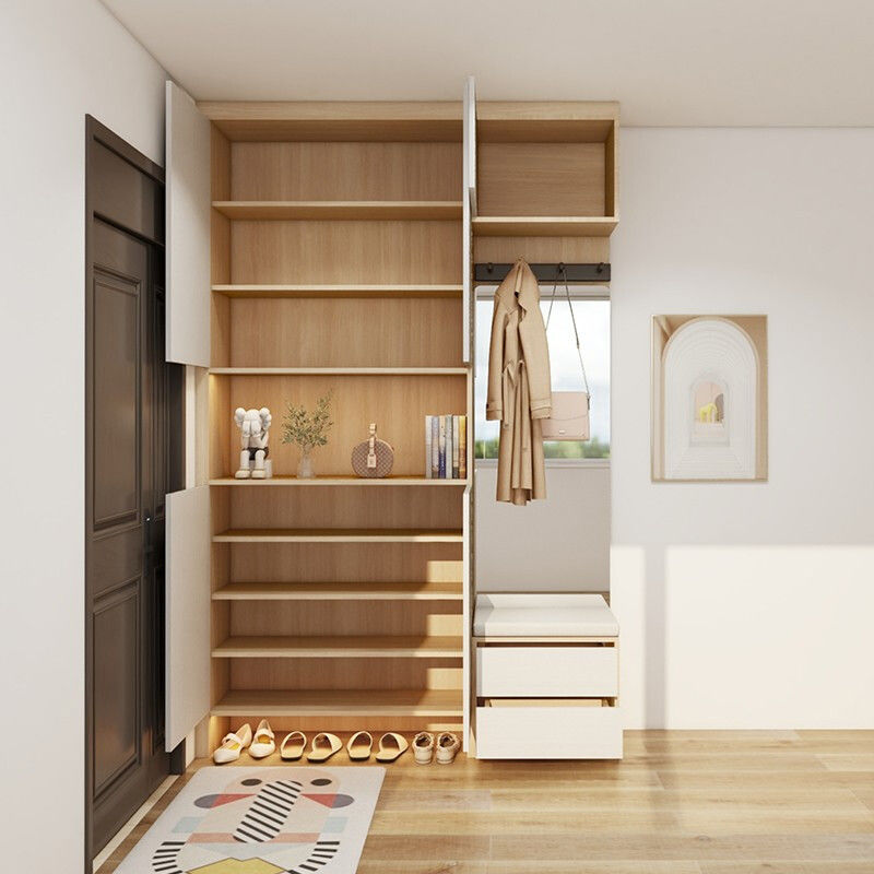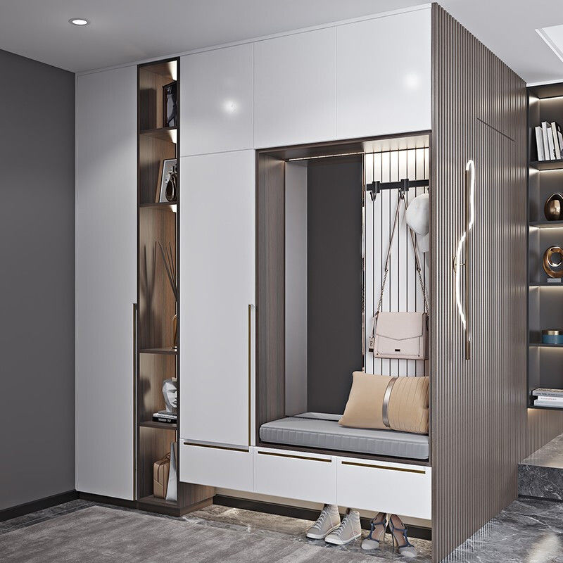 内嵌式换鞋凳,方便换鞋;上方还可以用来挂大衣、帽子,为出行和整理提供便利