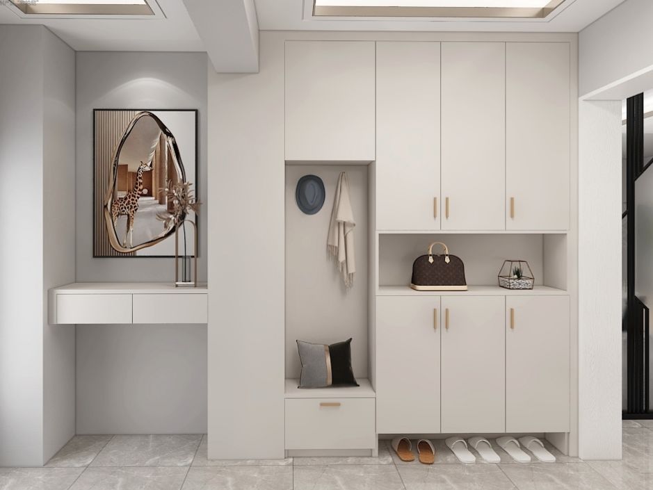 除布局设计外,玄关柜对该区域的收纳整合起着关键性的作用。