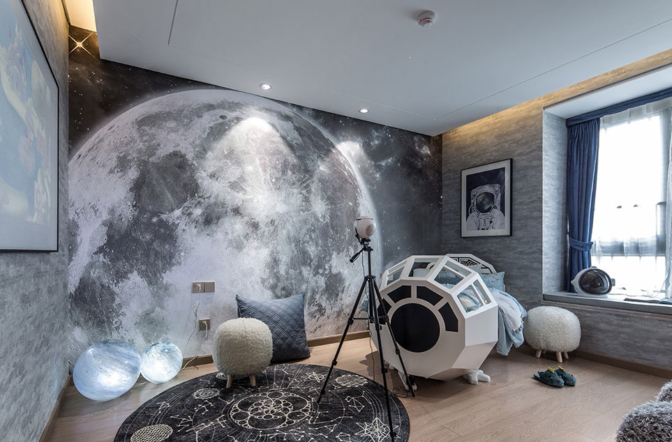 全屋以蓝色为主调,深、浅蓝相互搭配,丰富空间层次感,配色经典,满足小主人较长全年龄段的喜好需求。