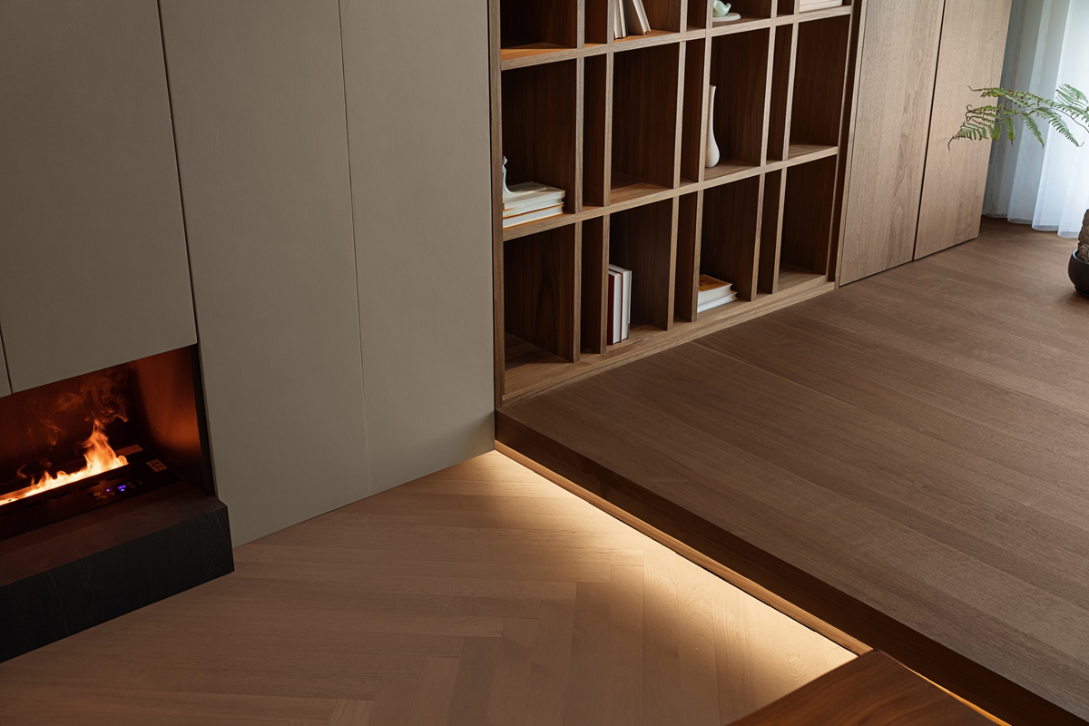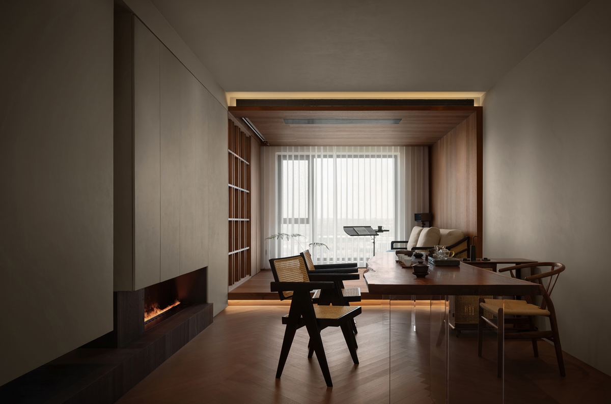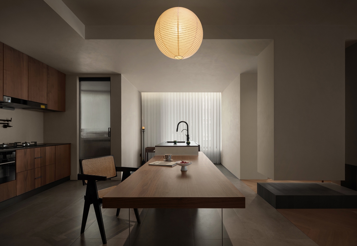 在喧嚣都市的褶皱里,这套空间以**「减法美学」**重构生活的本质,将材质的本真、光影的韵律与功能的温度,织入每一寸呼吸感中。