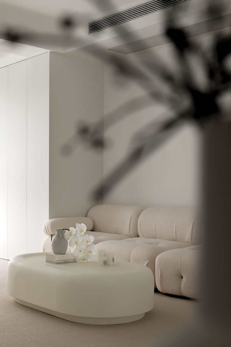 这套居所以**“纯粹白+克制设计”**为语言,将“少即是多”的哲学注入每一寸空间,让家成为可呼吸、可沉淀的精神场域。