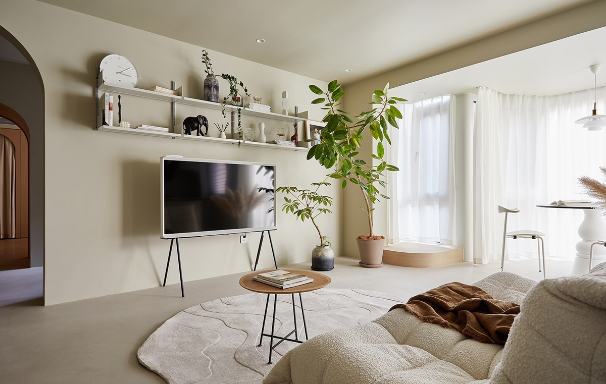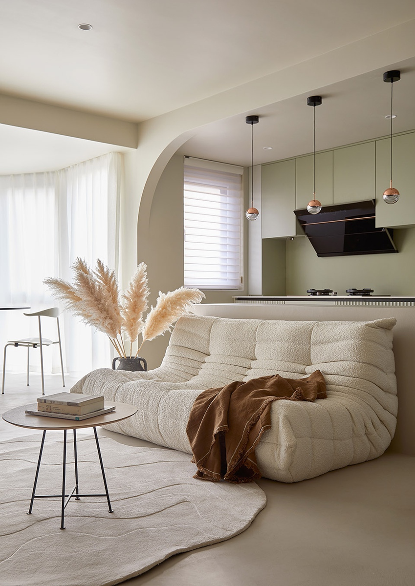 以柔和弧线为笔、温暖色系为墨,在空间里织就一张“松弛感的网”,让每一次归家都像投入温柔的怀抱。