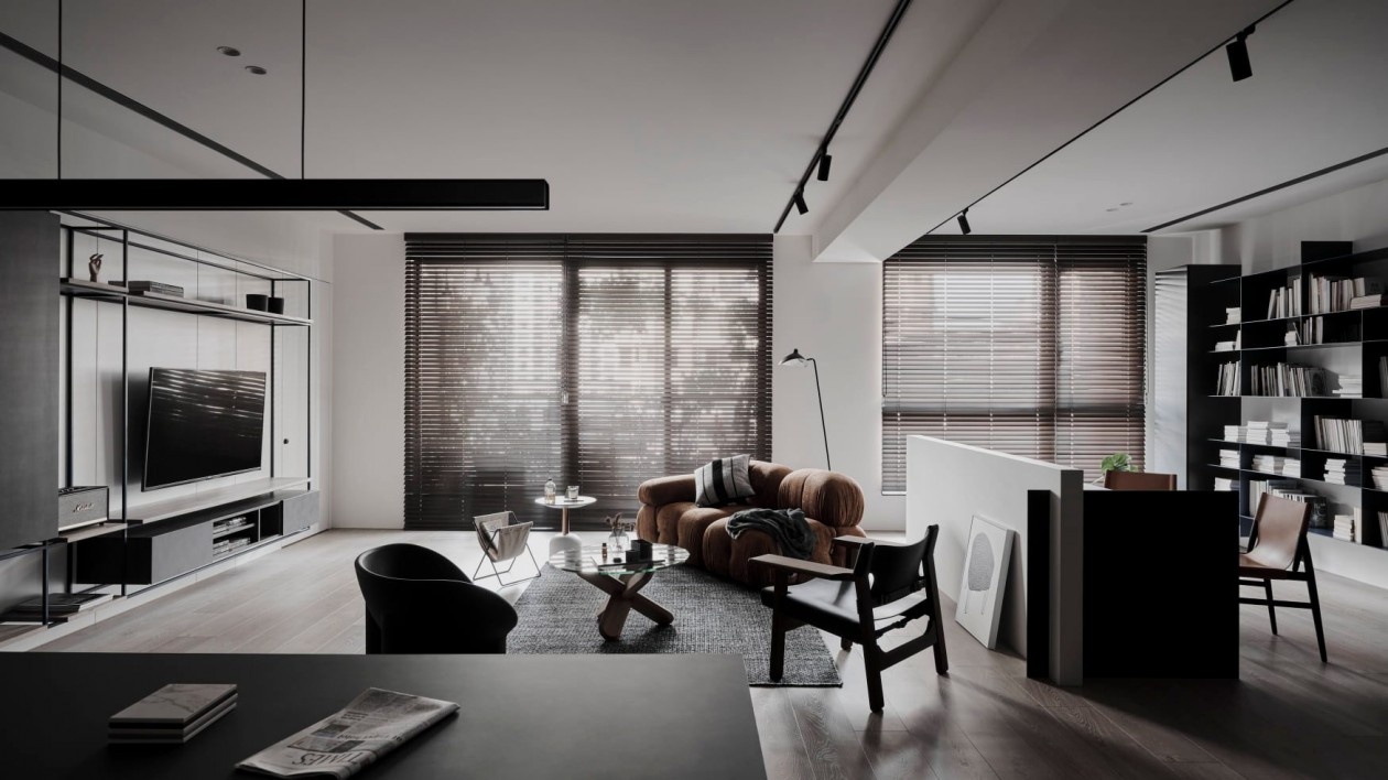 这套暗黑系极简住宅,以“克制的质感”为核心,在黑白灰的基底里,藏着对空间与生活的精准表达: