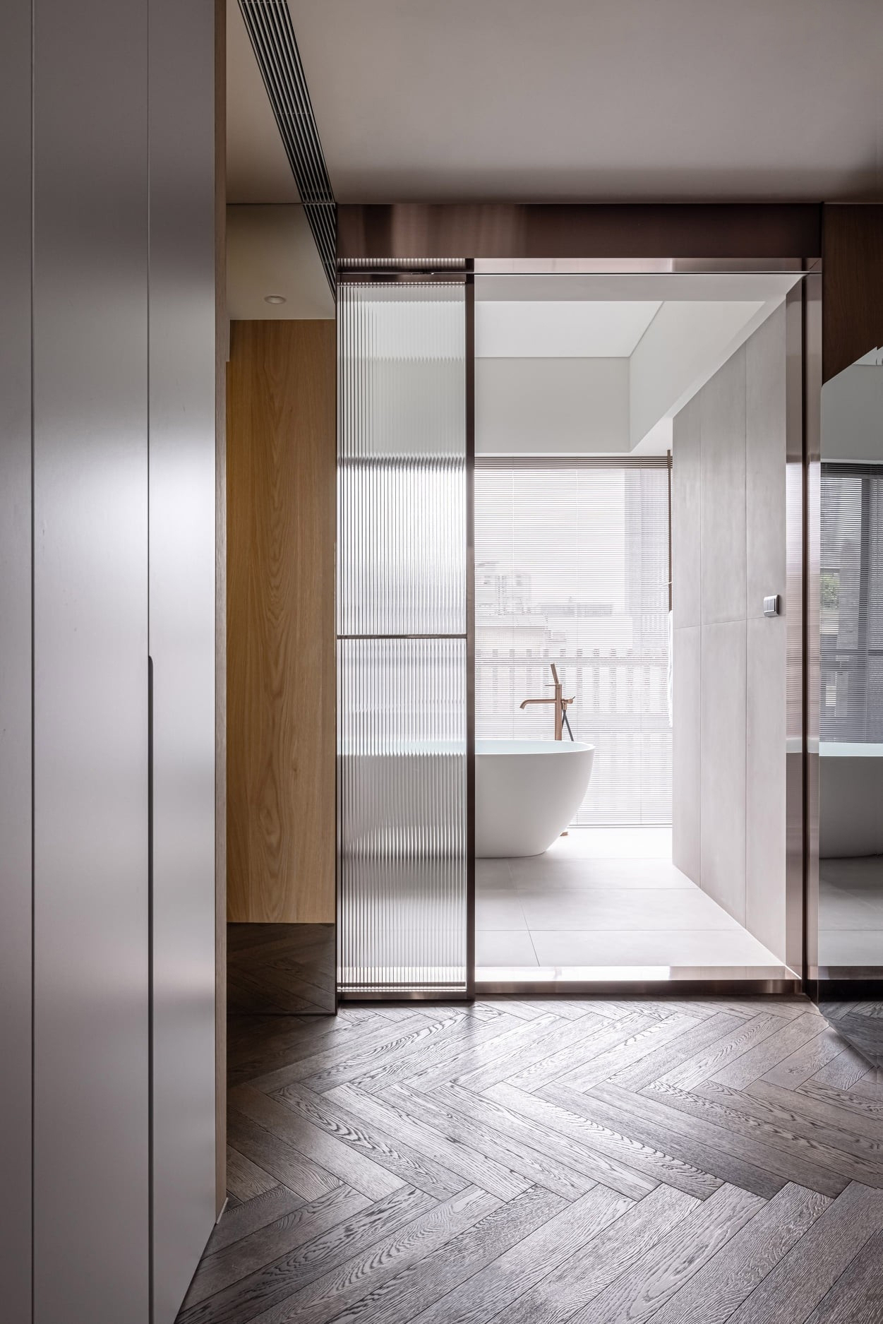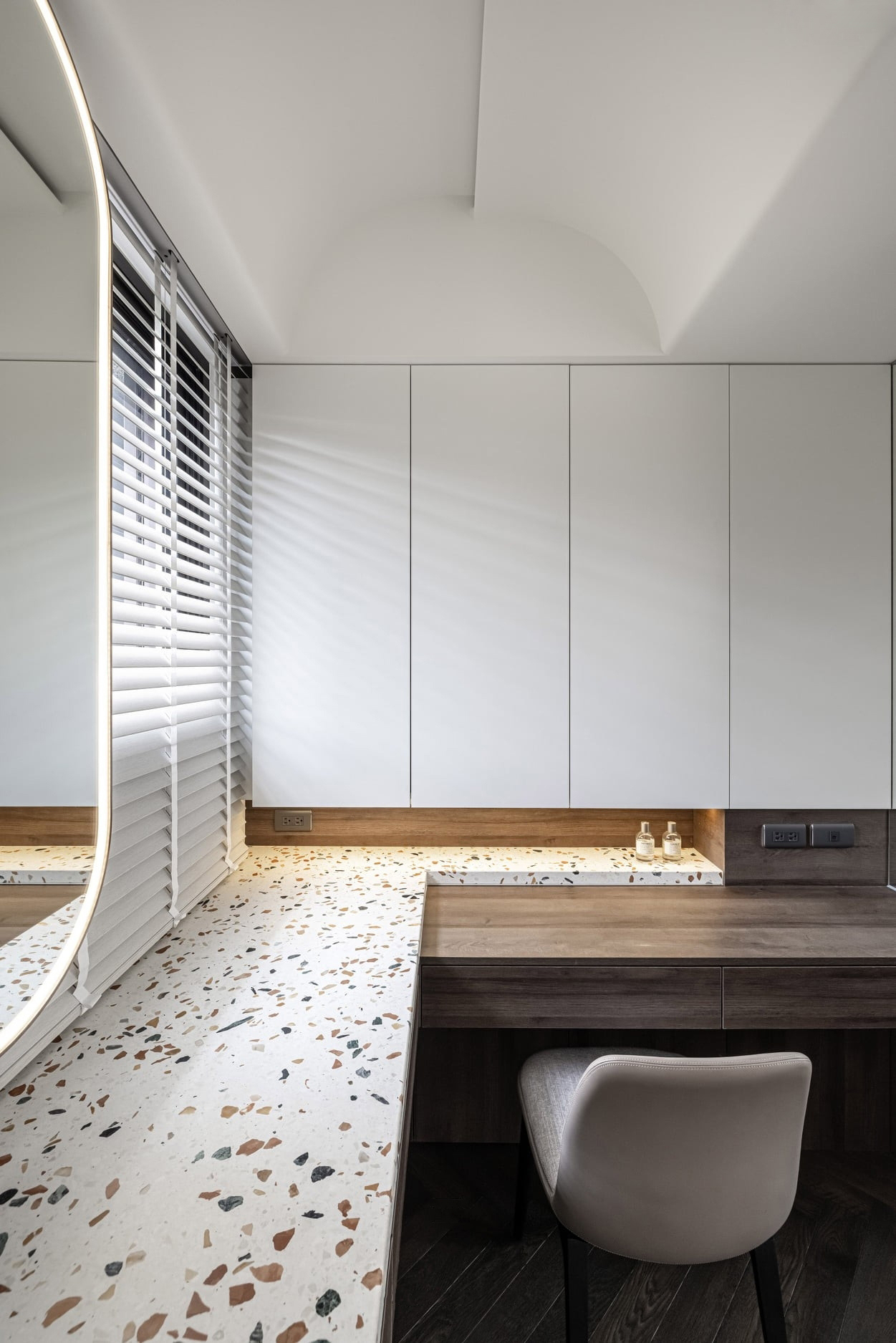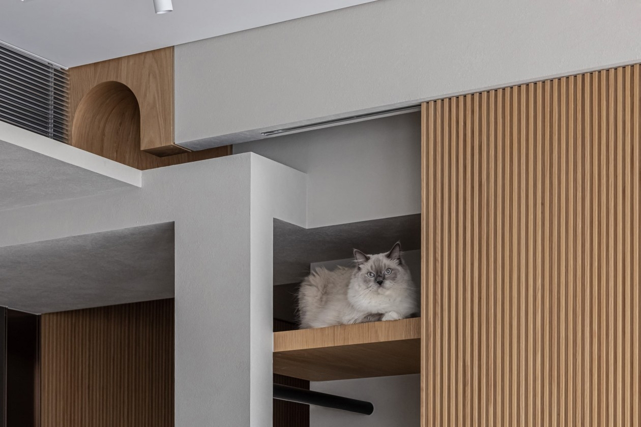 这套设计是暖调极简风,以木色、浅灰为基底,用柔和材质与利落线条,平衡了质感与温度。