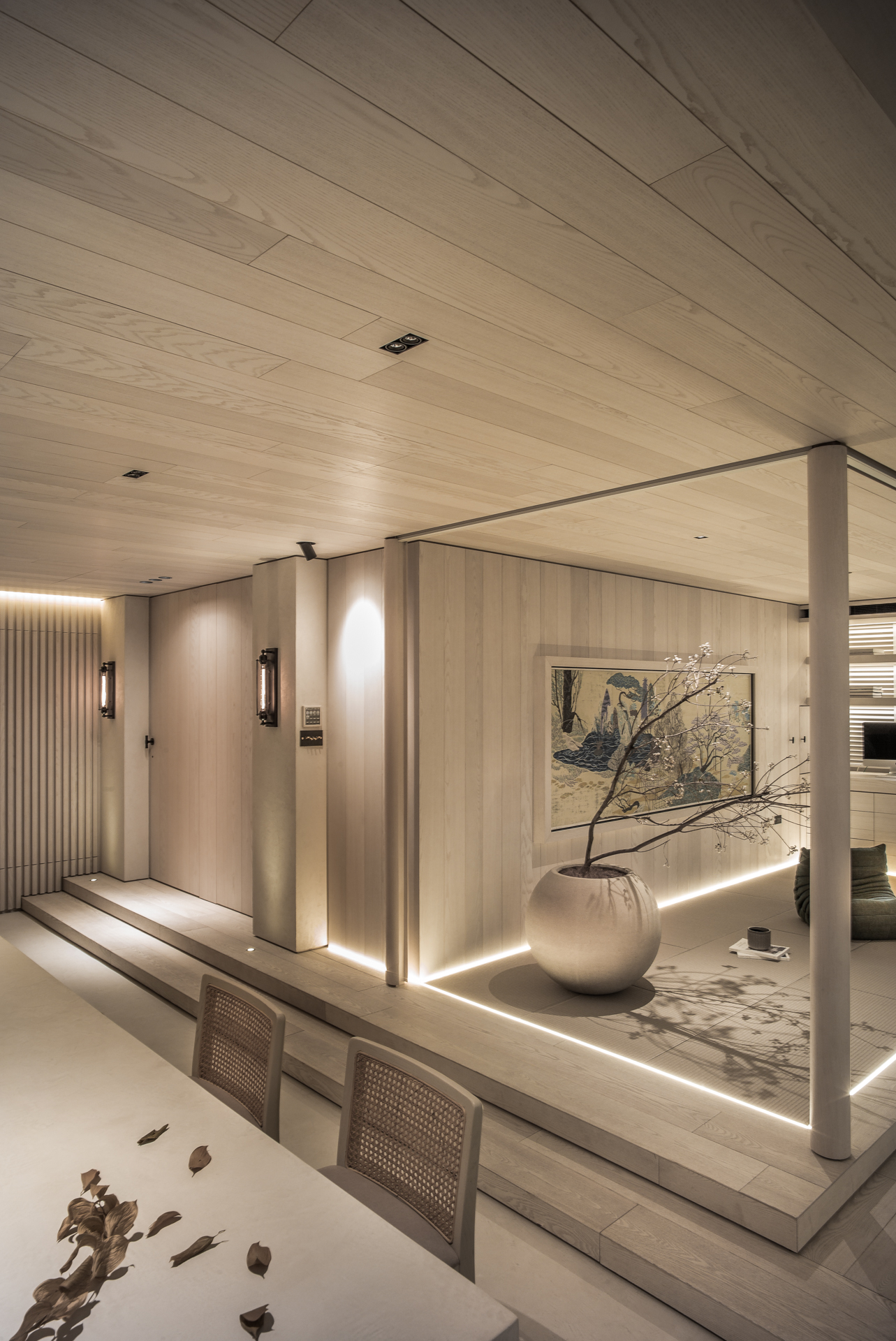 这套住宅是侘寂风+自然质感的治愈系大宅,把“松弛高级感”刻进了每个细节: