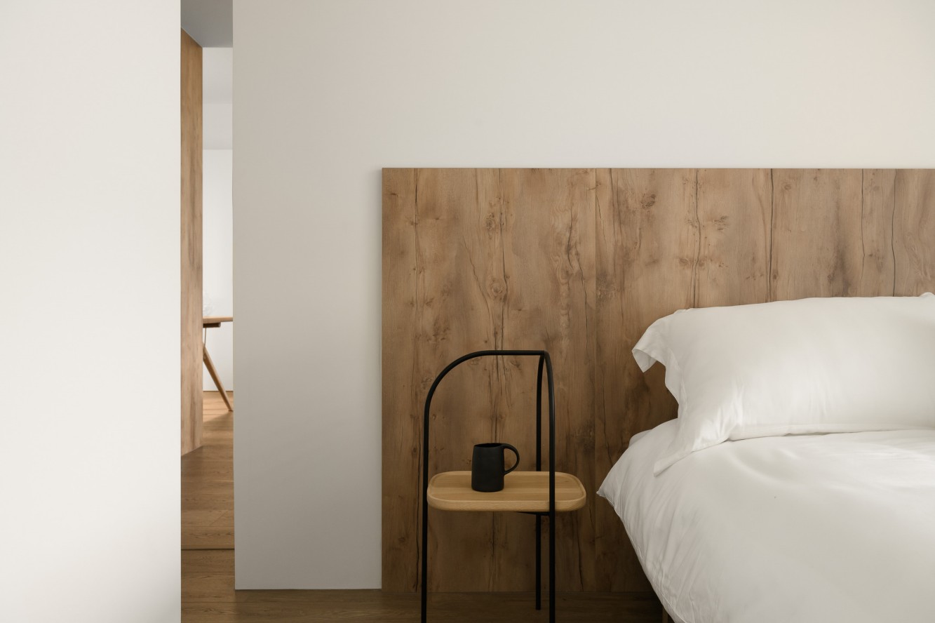 • 卧室:木饰面床头揉进软白床品,百叶窗滤出窗外的湖景,连托盘里的小瓶都带着“不赶时间”的慵懒,躺下就是被温柔接住的安全感。