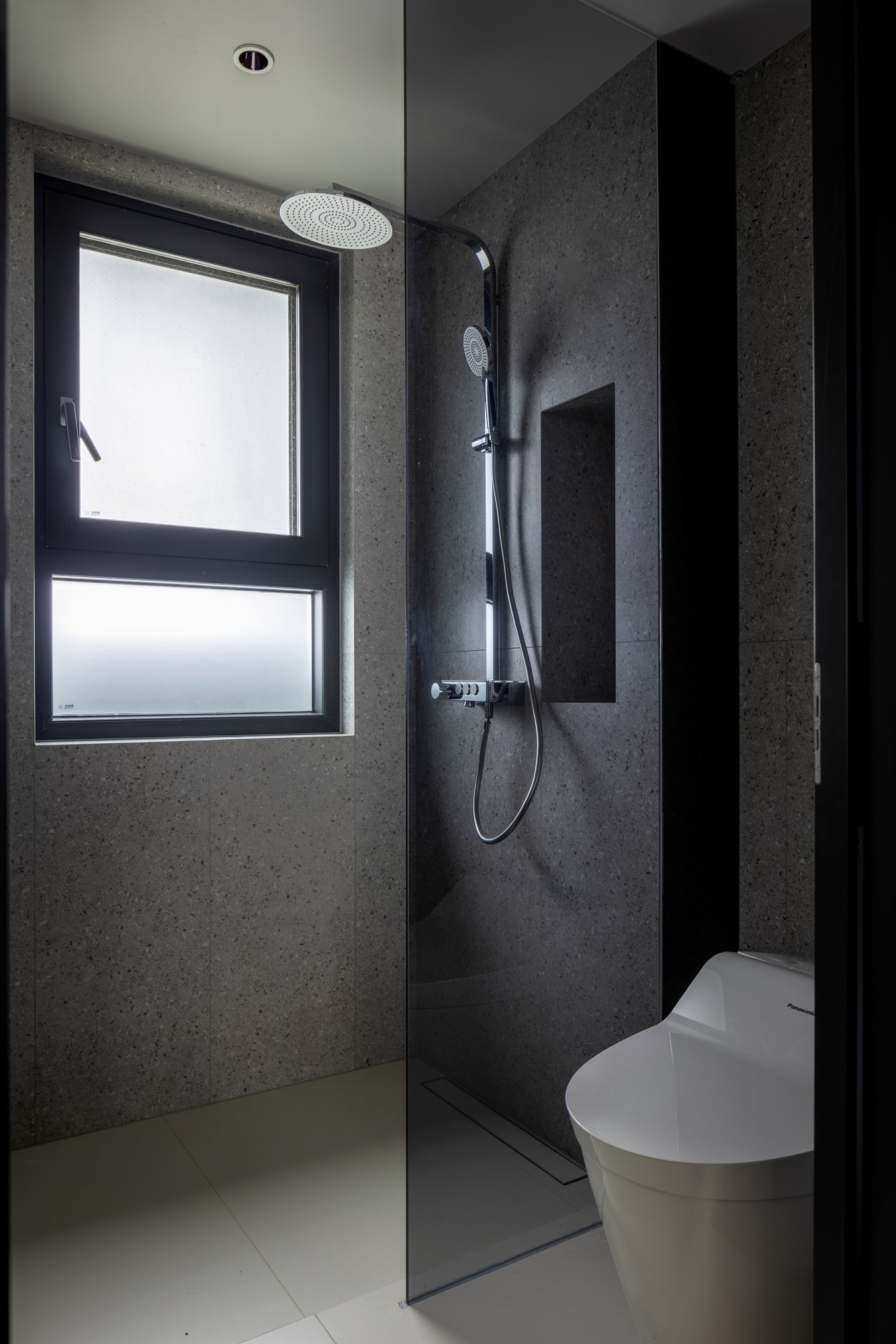 • 卫浴:水泥纹墙砖+玻璃隔断,冷调里透着利落,智能马桶的细腻设计,让功能区也有了精致感。
