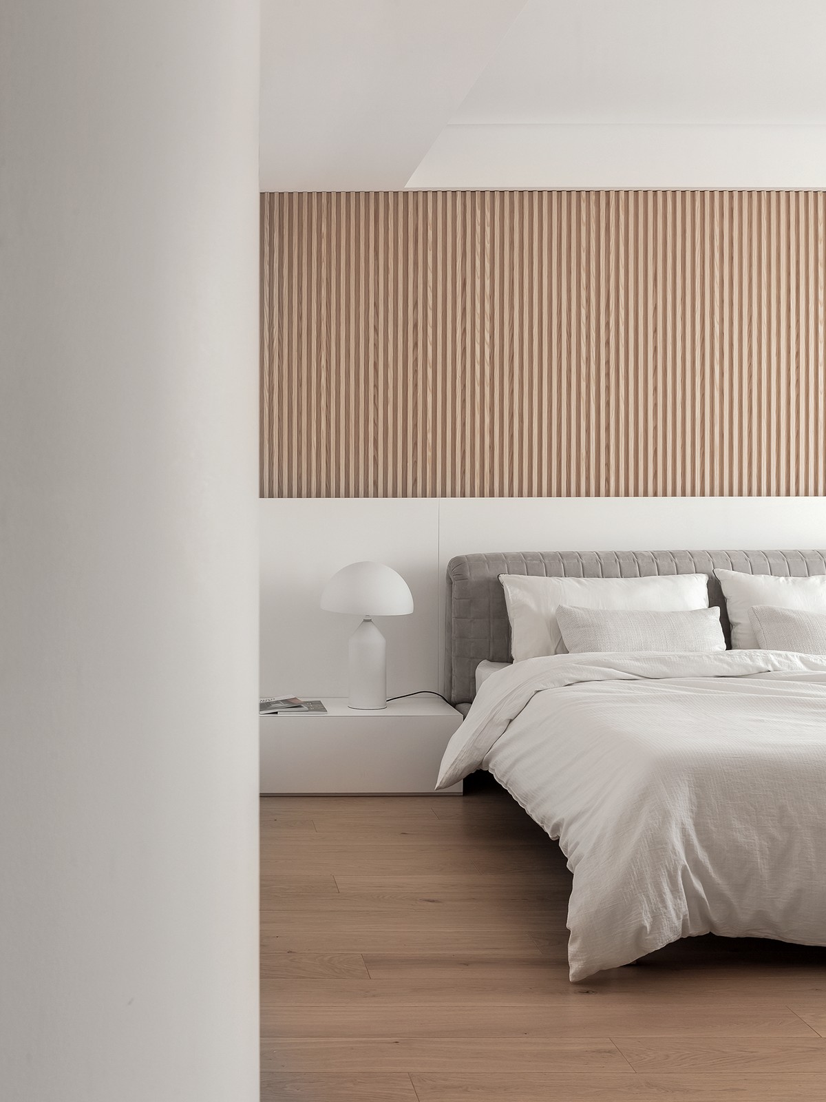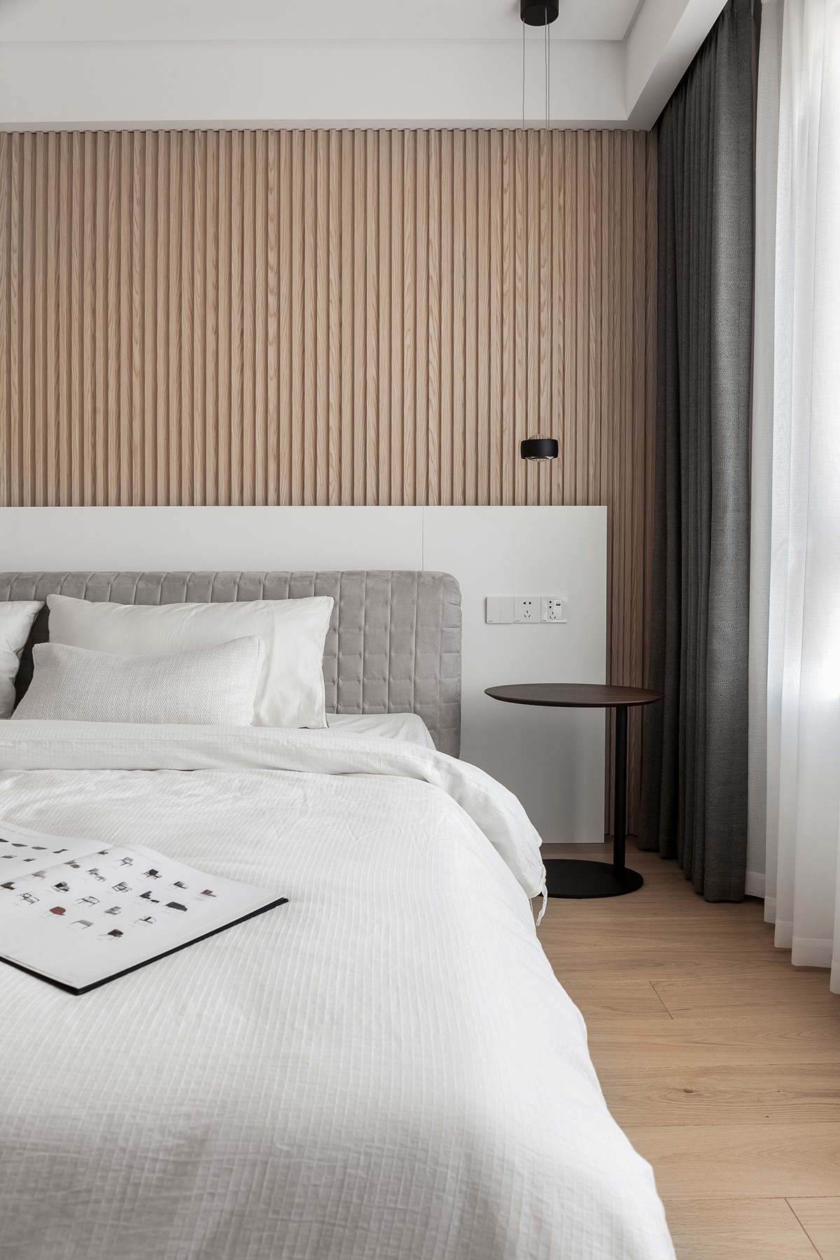 没有花哨装饰,却在材质(木的暖、软包的柔、水泥的静)与光影里,把“舒适”揉进每处——