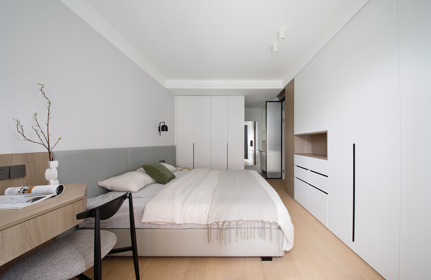 墙面的肌理漆像揉皱的奶霜,窗帘一拉,整个房间都成了“私人松弛场”。