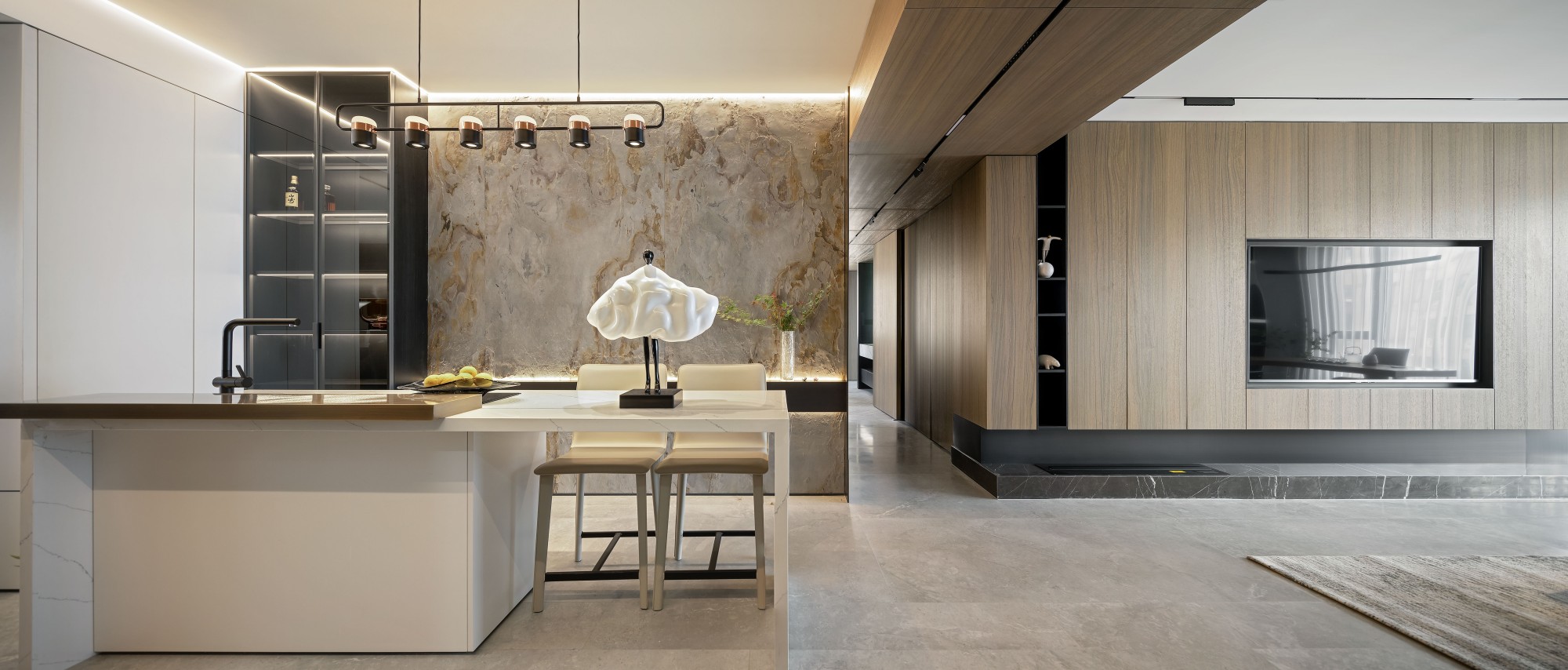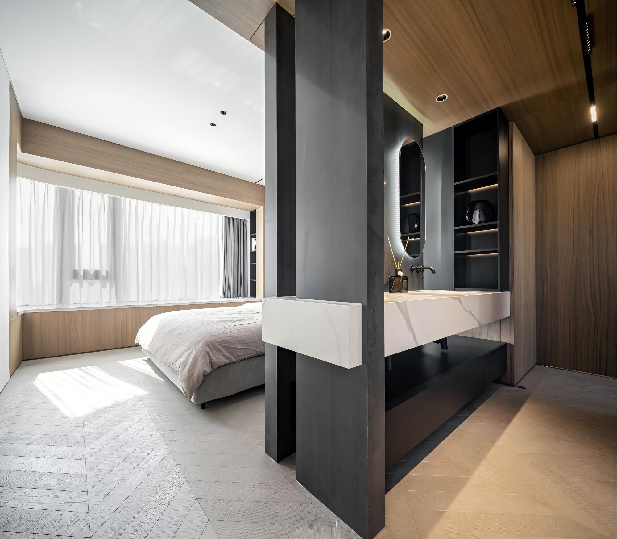 这套现代住宅的设计:以“克制的高级感+自然的温度”为核心,把都市生活的松弛感藏在每个细节里: