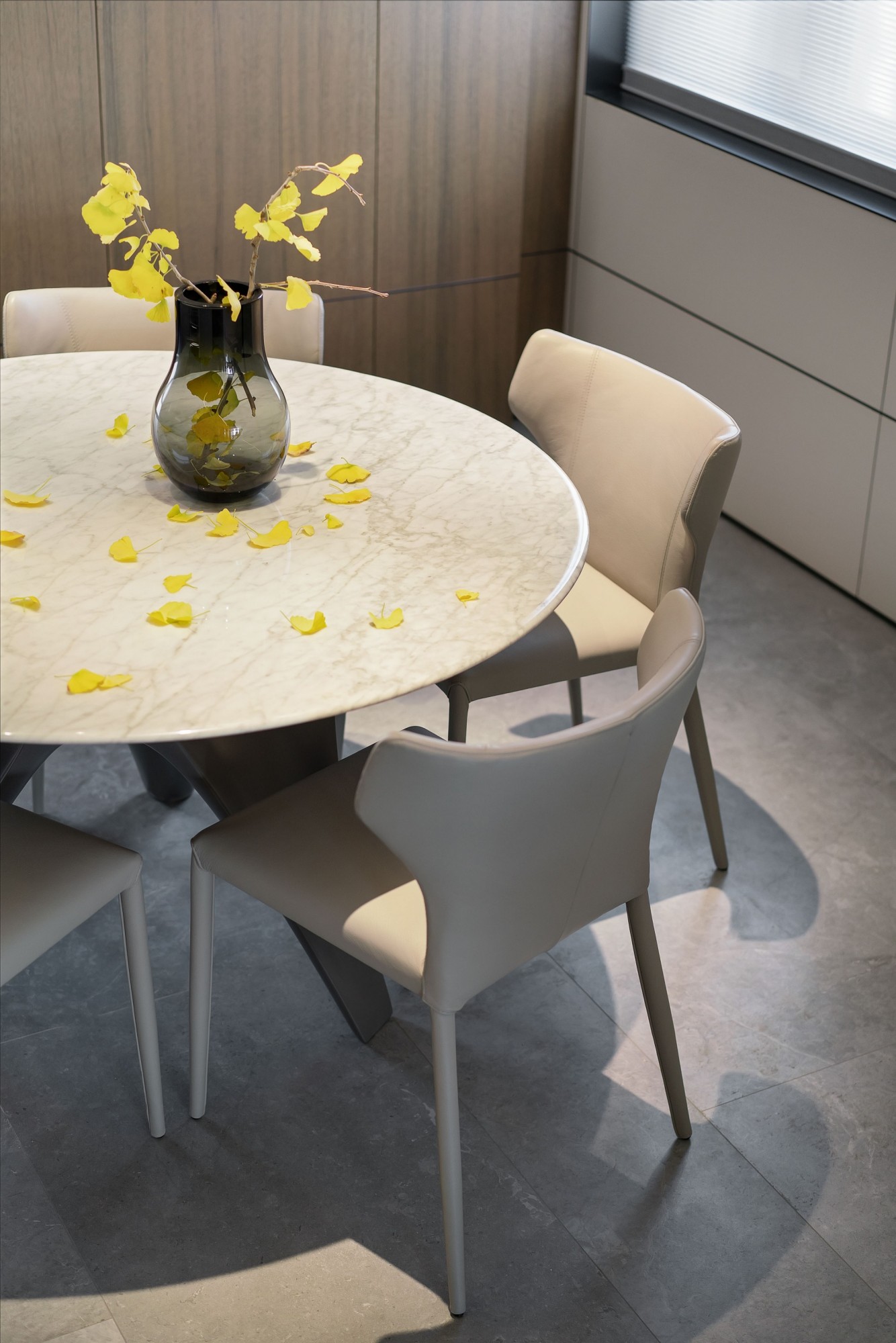 餐桌的弧度刚好接住全家人的聊天声,连餐椅的深浅配色,都像把“热闹与安静”捏在了一起。