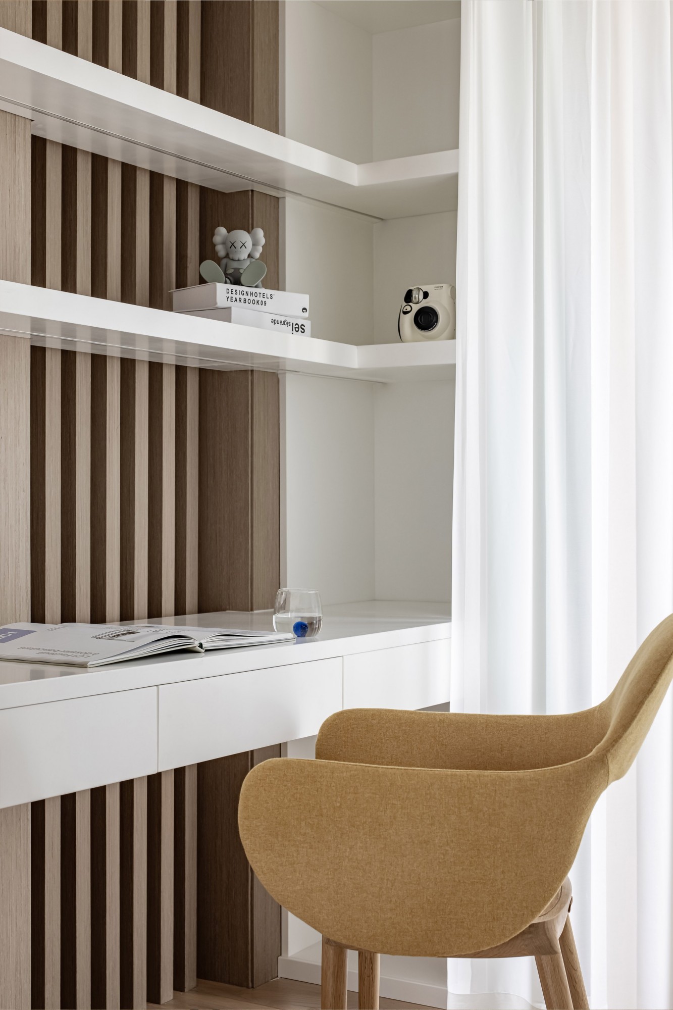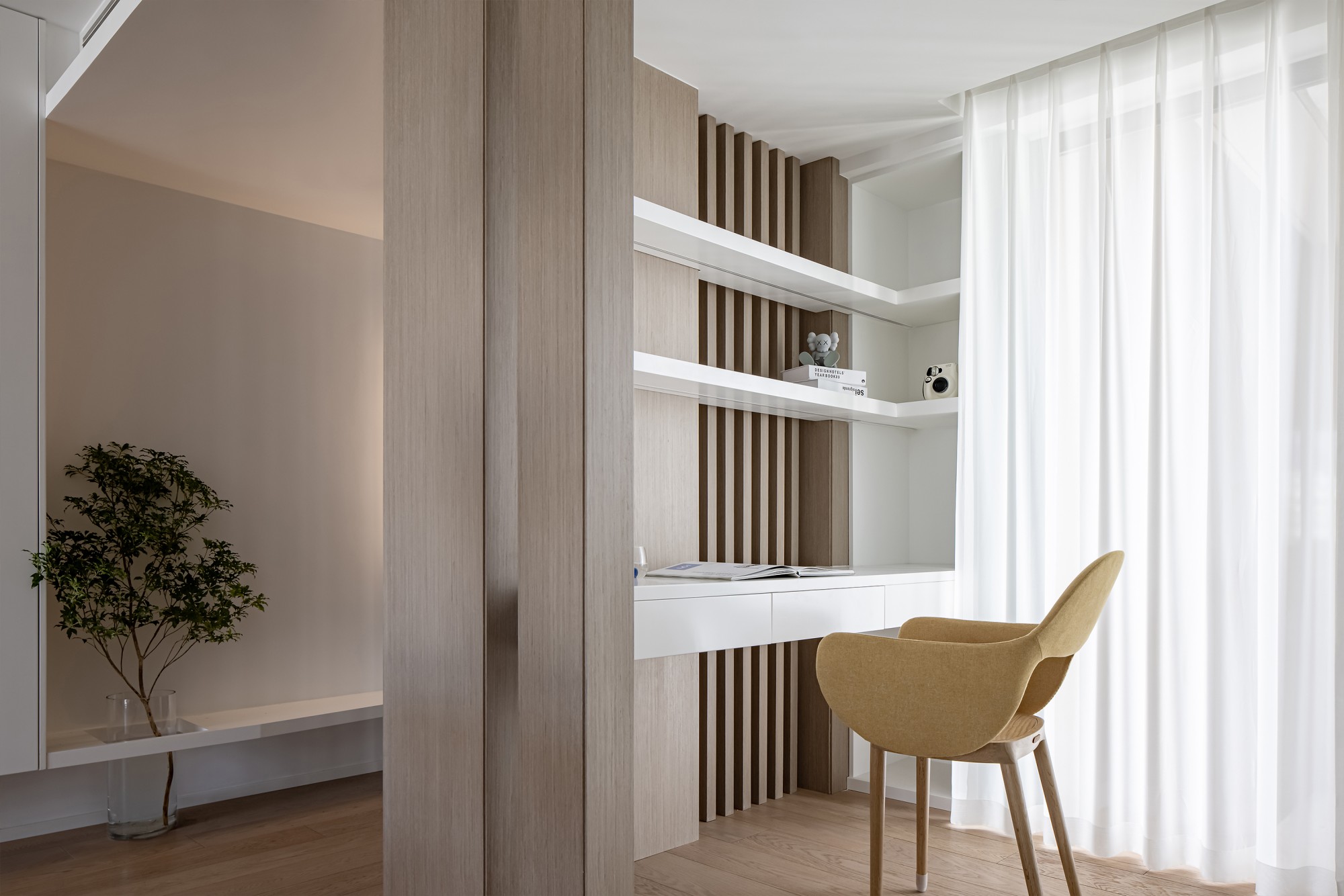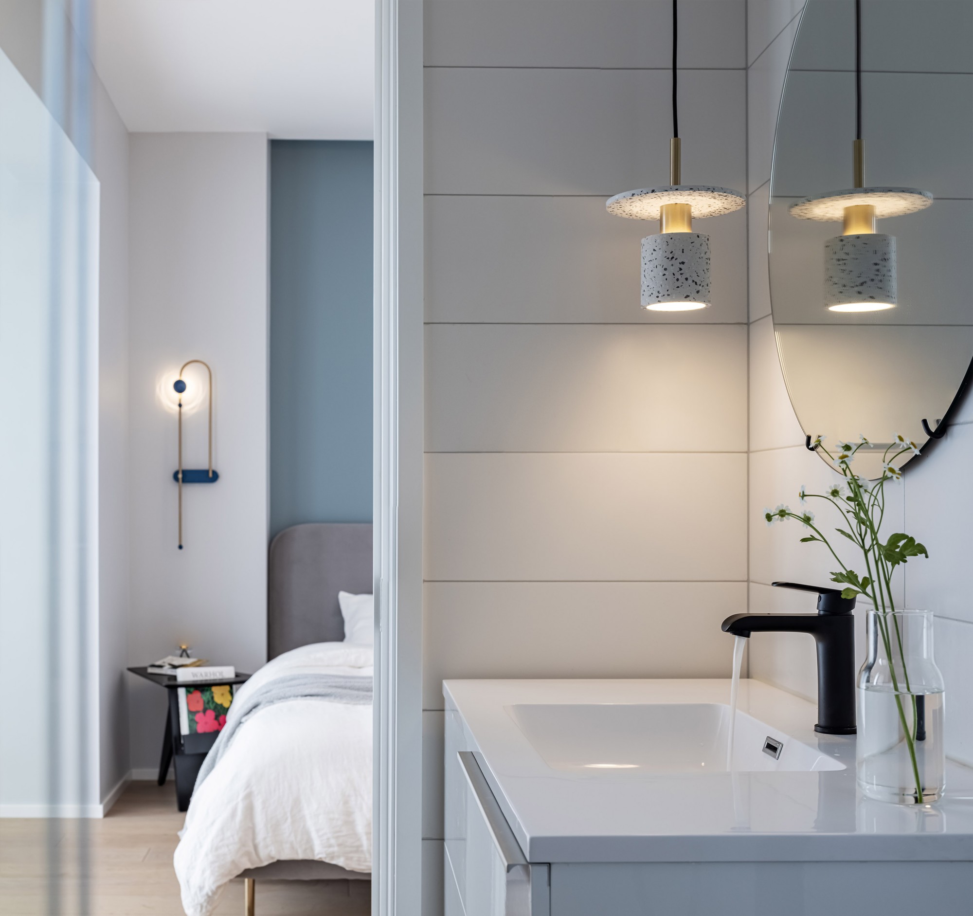 窗边的小台面上,书和花正等着“睡前翻两页”的温柔时刻——家的意义,不过是把日子过成“醒来就开心”的样子。