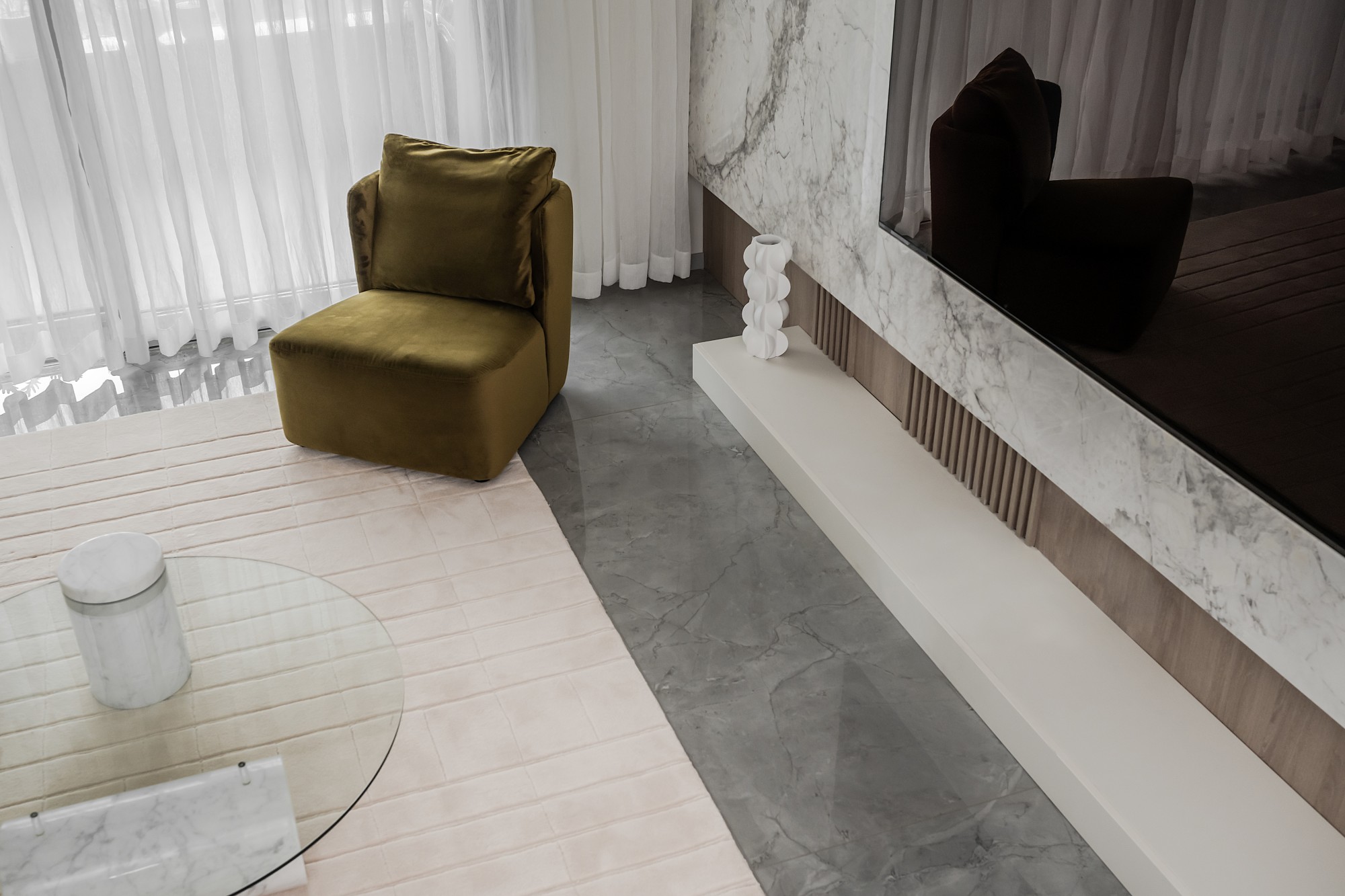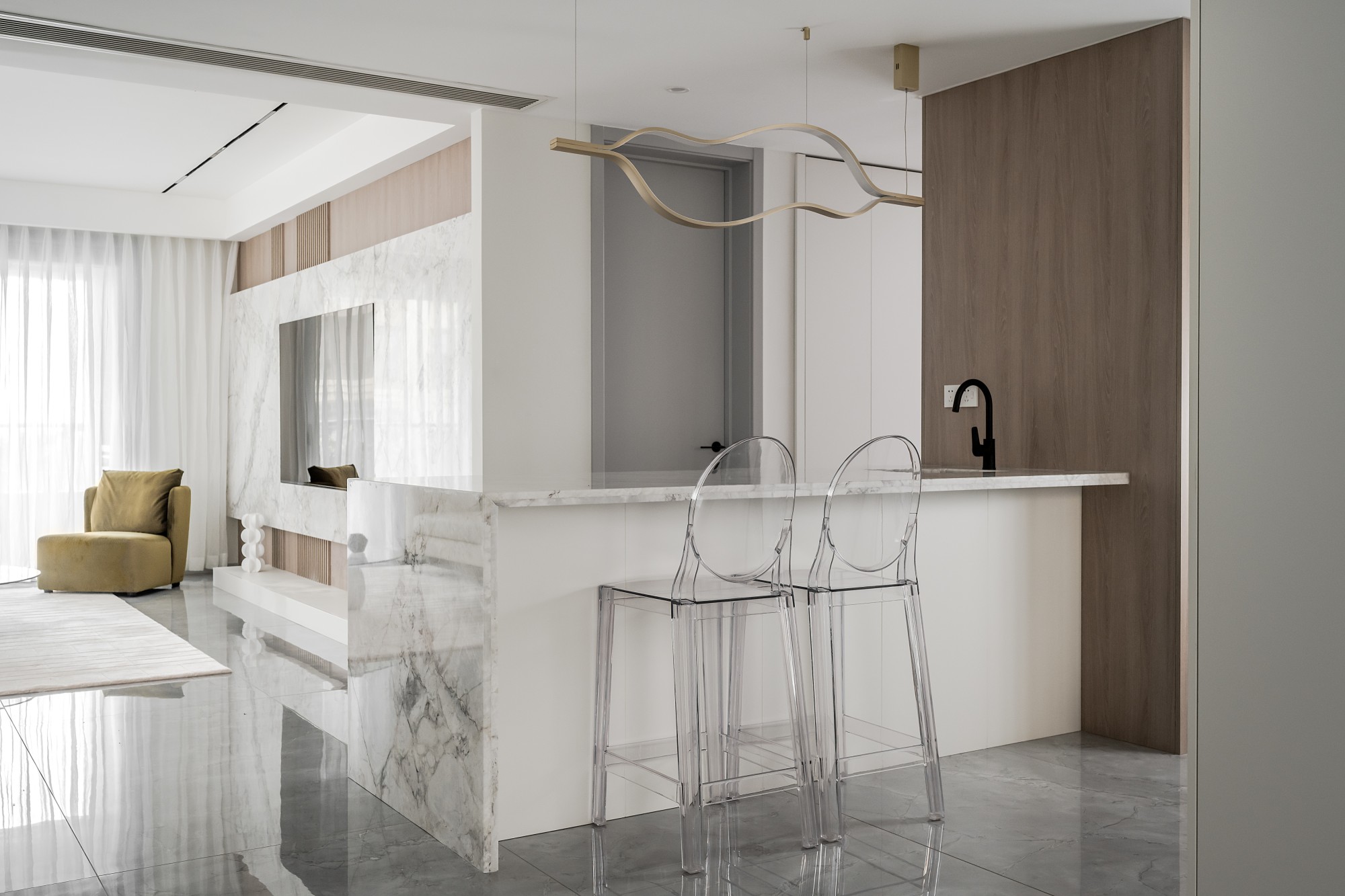 这套住宅是现代极简与轻奢质感的融合设计,从公共空间到私密卧室,每个区域都用细节营造出高级且松弛的氛围: