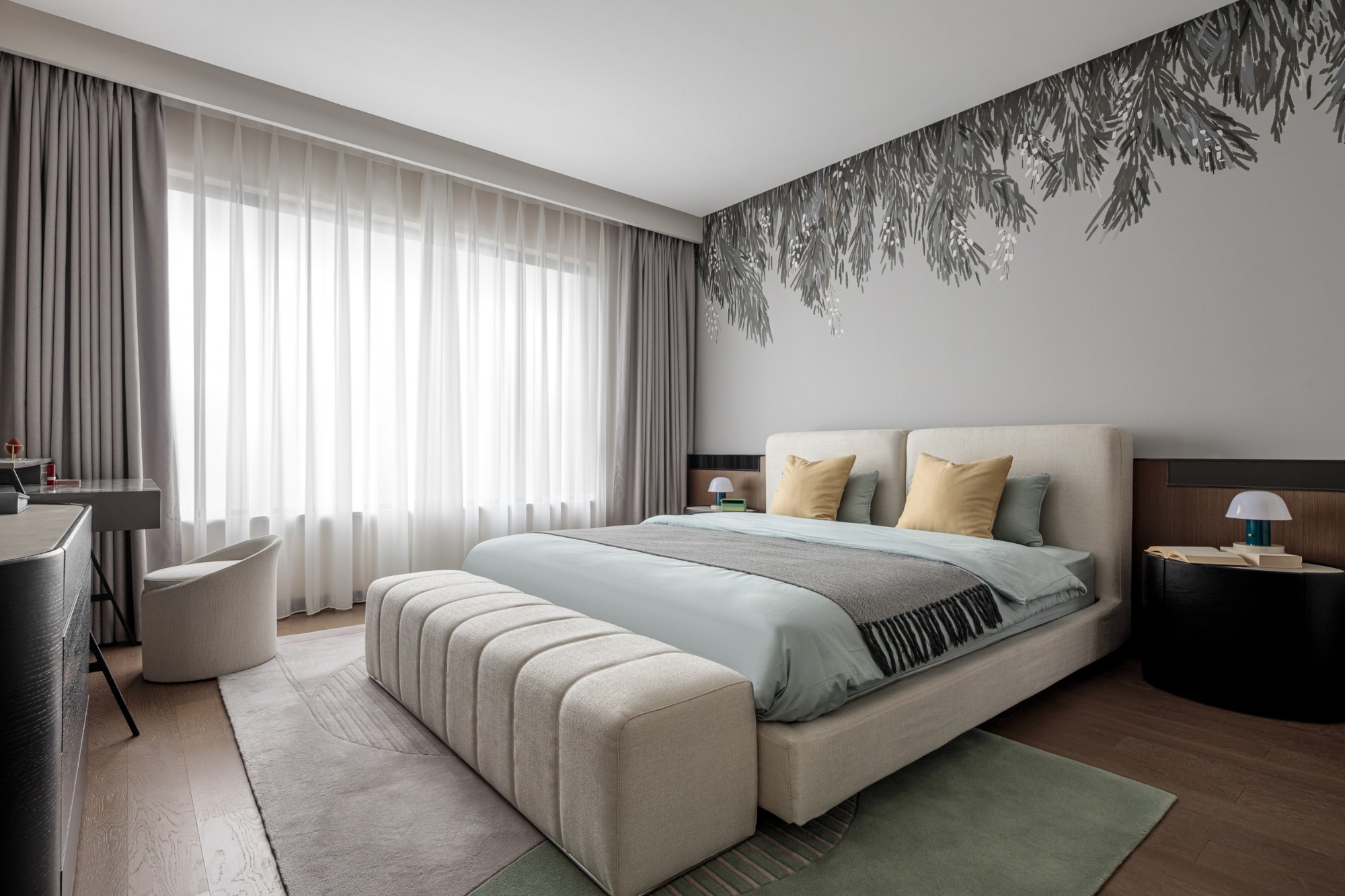 这套住宅的装修走的是现代简约+轻自然的风格,从公共区域到私密空间都保持了统一的质感,细节里藏着不少巧思: