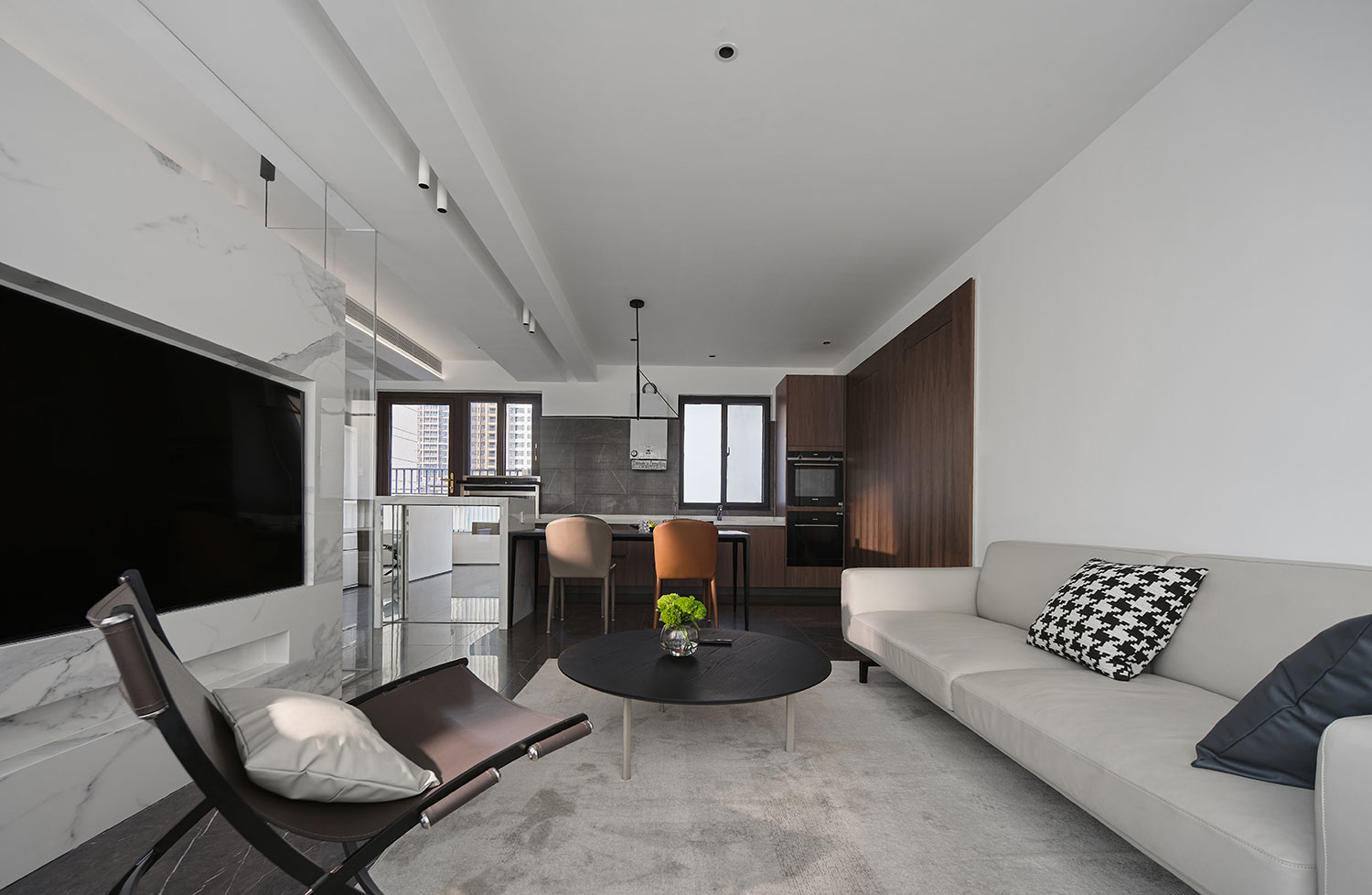 整个家没堆华丽装饰,靠材质(大理石、木、皮质)和光影(百叶帘、线性灯)搭出高级感,住着舒服又耐看,是“越住越喜欢”的松弛宅。