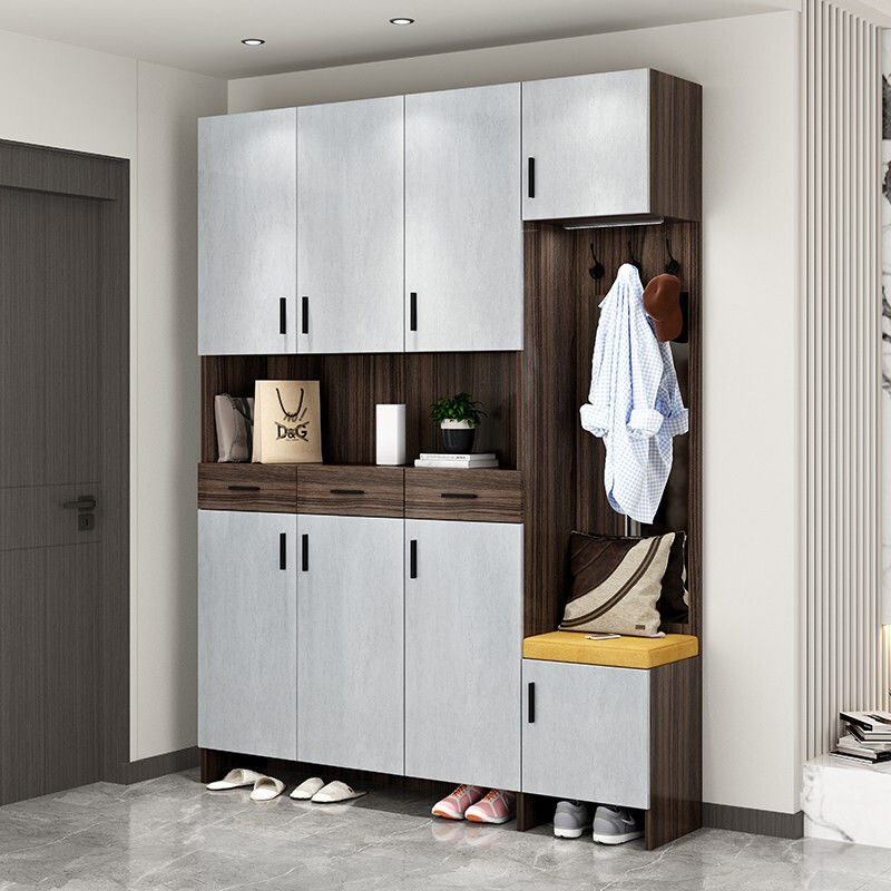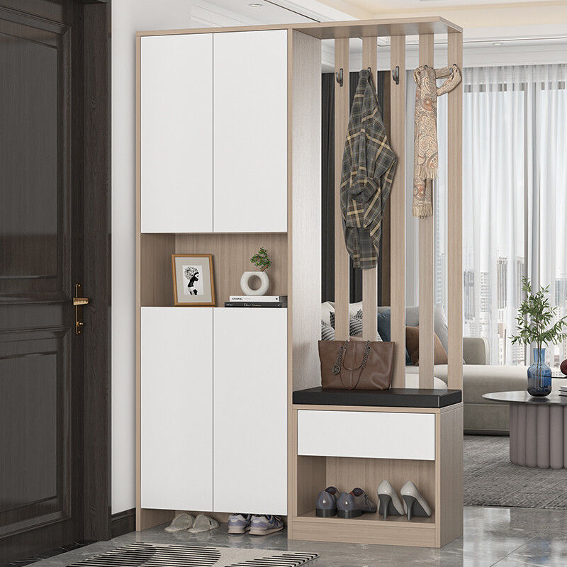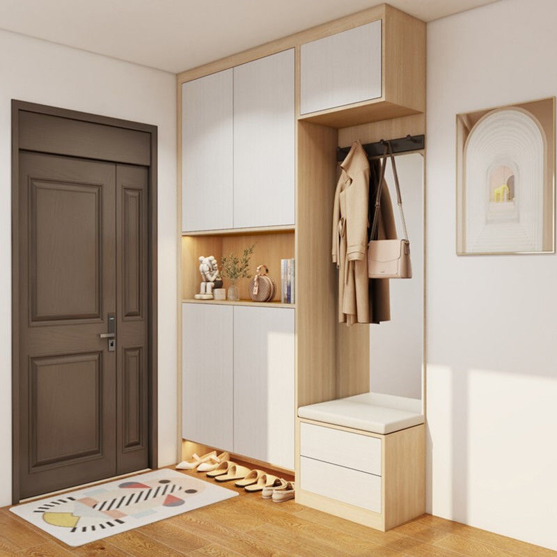 内嵌式换鞋凳,方便换鞋;上方还可以用来挂大衣、帽子,为出行和整理提供便利